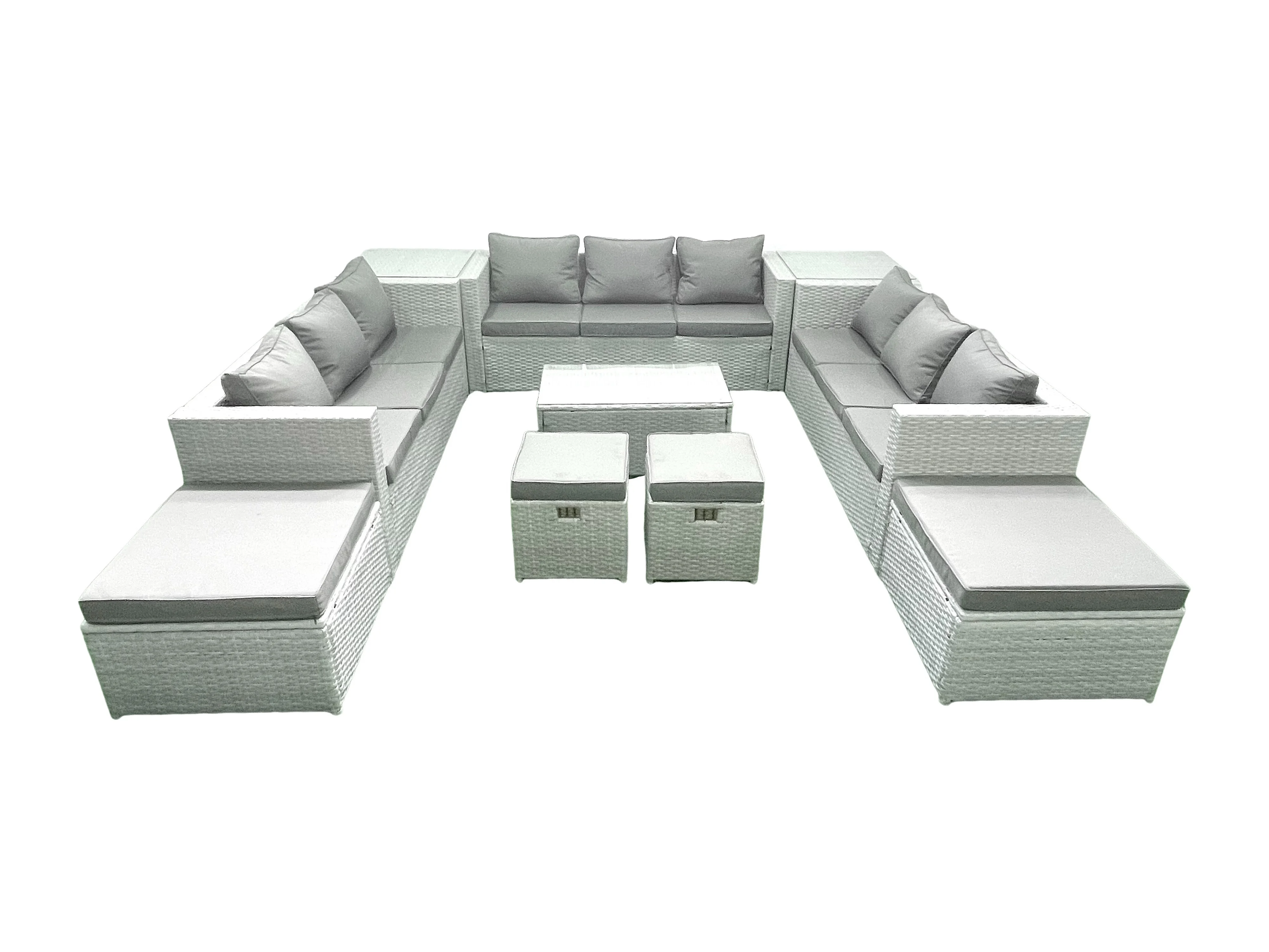 10 Pièces Salon de jardin Canapé de jardin Table basse avec 2 Tables d'appoint 4 Tabourets Gris clair mixte