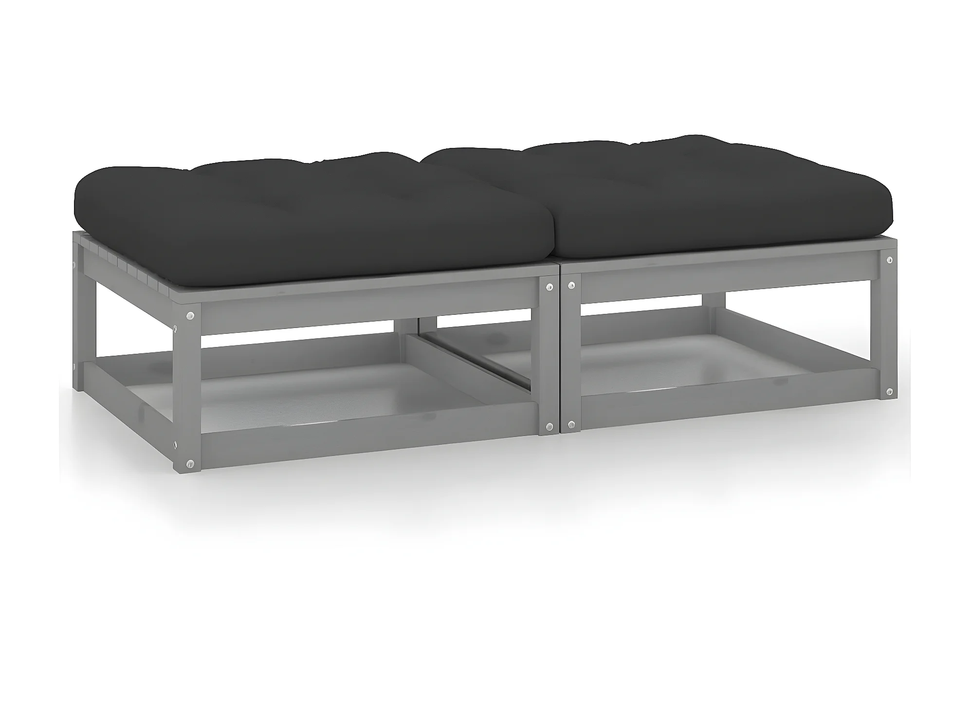 2 pcs Repose-pieds de jardin avec coussins Gris Bois de pin LQF60246