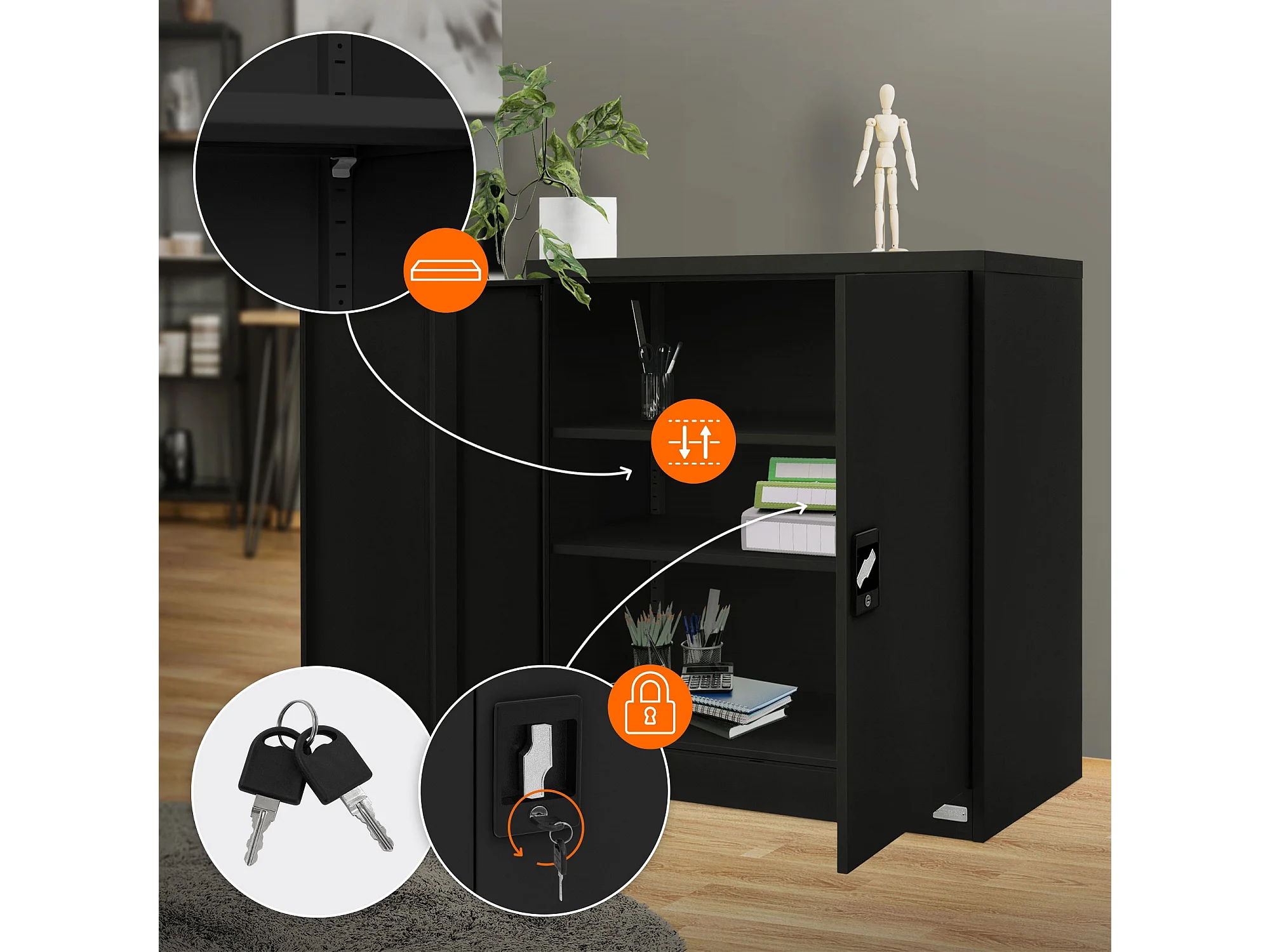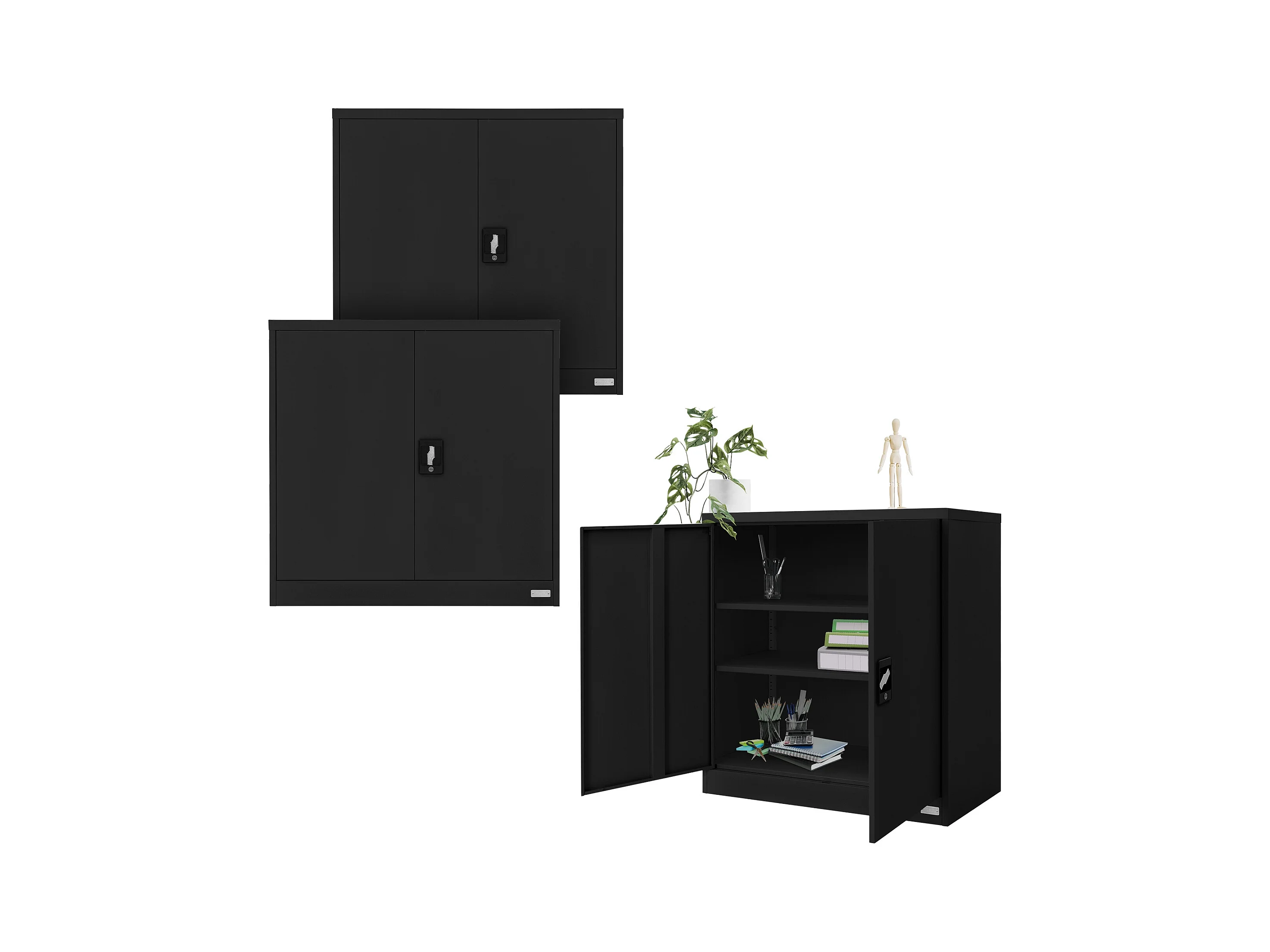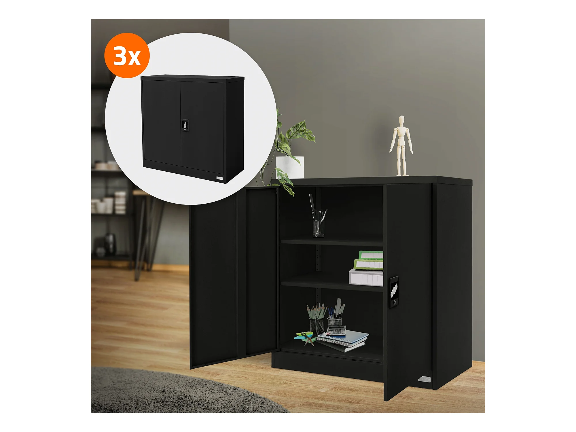 3 Armoires de bureau acier noir meuble à dossiers portes battantes 90x40x90 cm