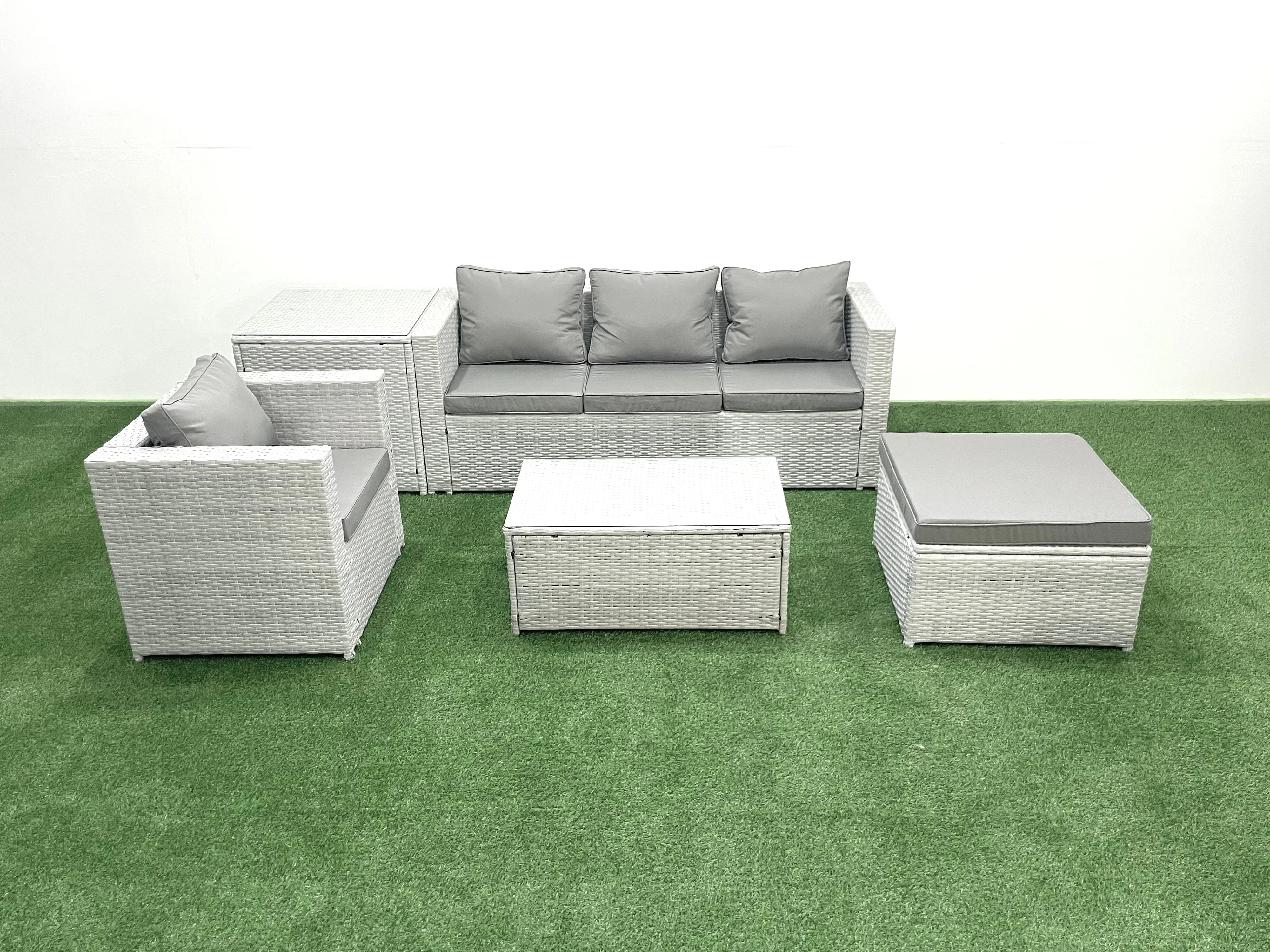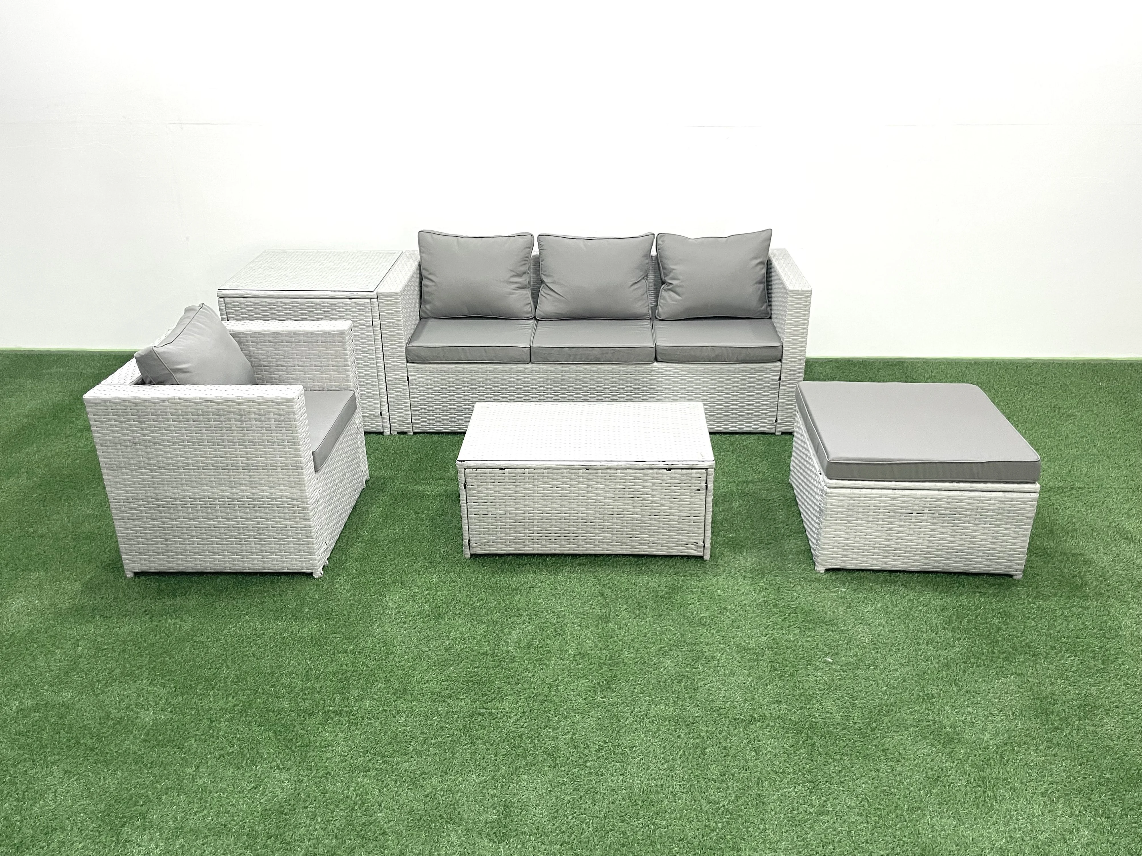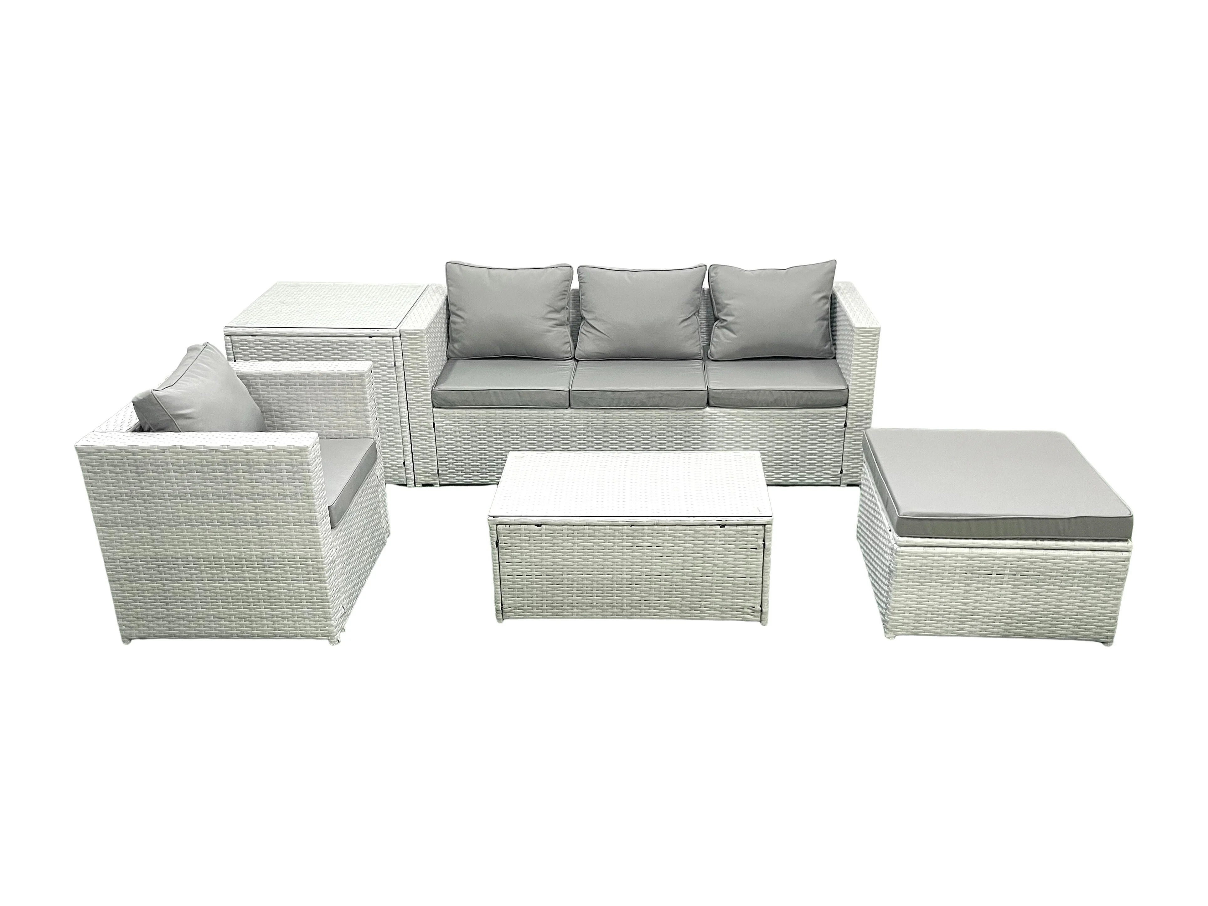 5 Pièces Salon de jardin Canapé de jardin avec Fauteuil Table basse Table d'appoint Grand tabouret Gris clair mixte
