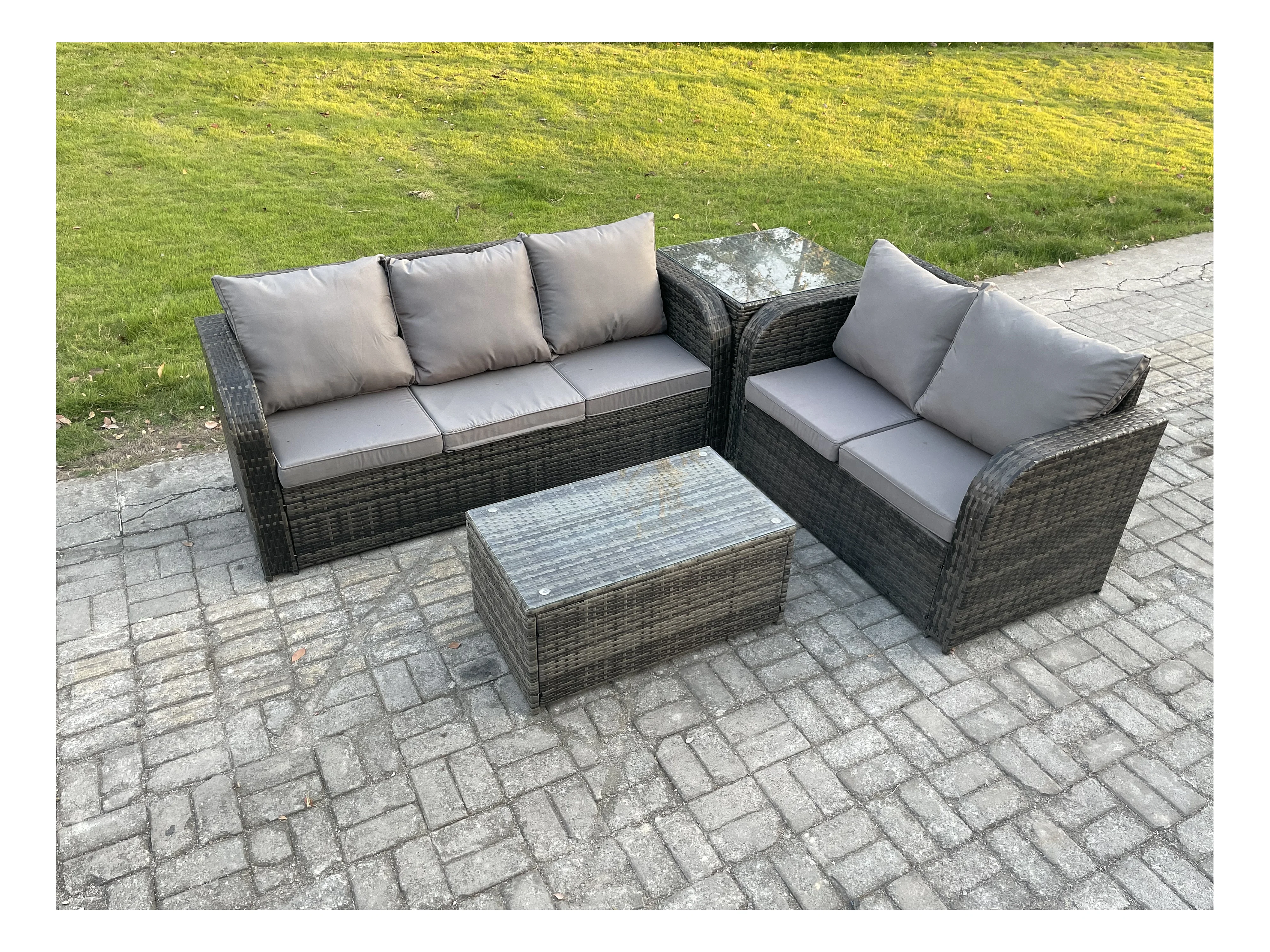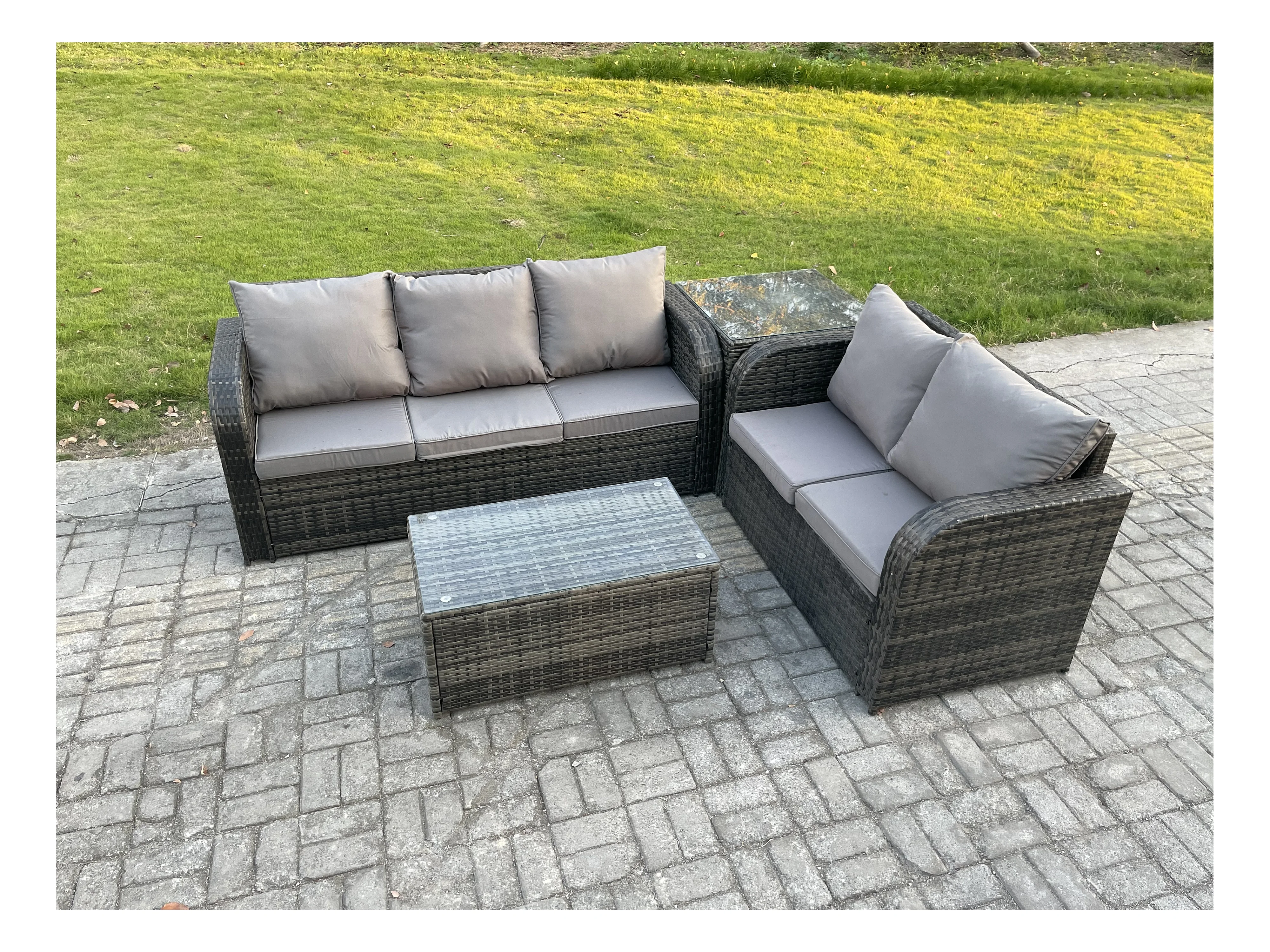 5 places Ensemble de Meubles de Jardin avec Table basse rectangulaire Canapé 3 places Canapé d'amour Table d'appoint