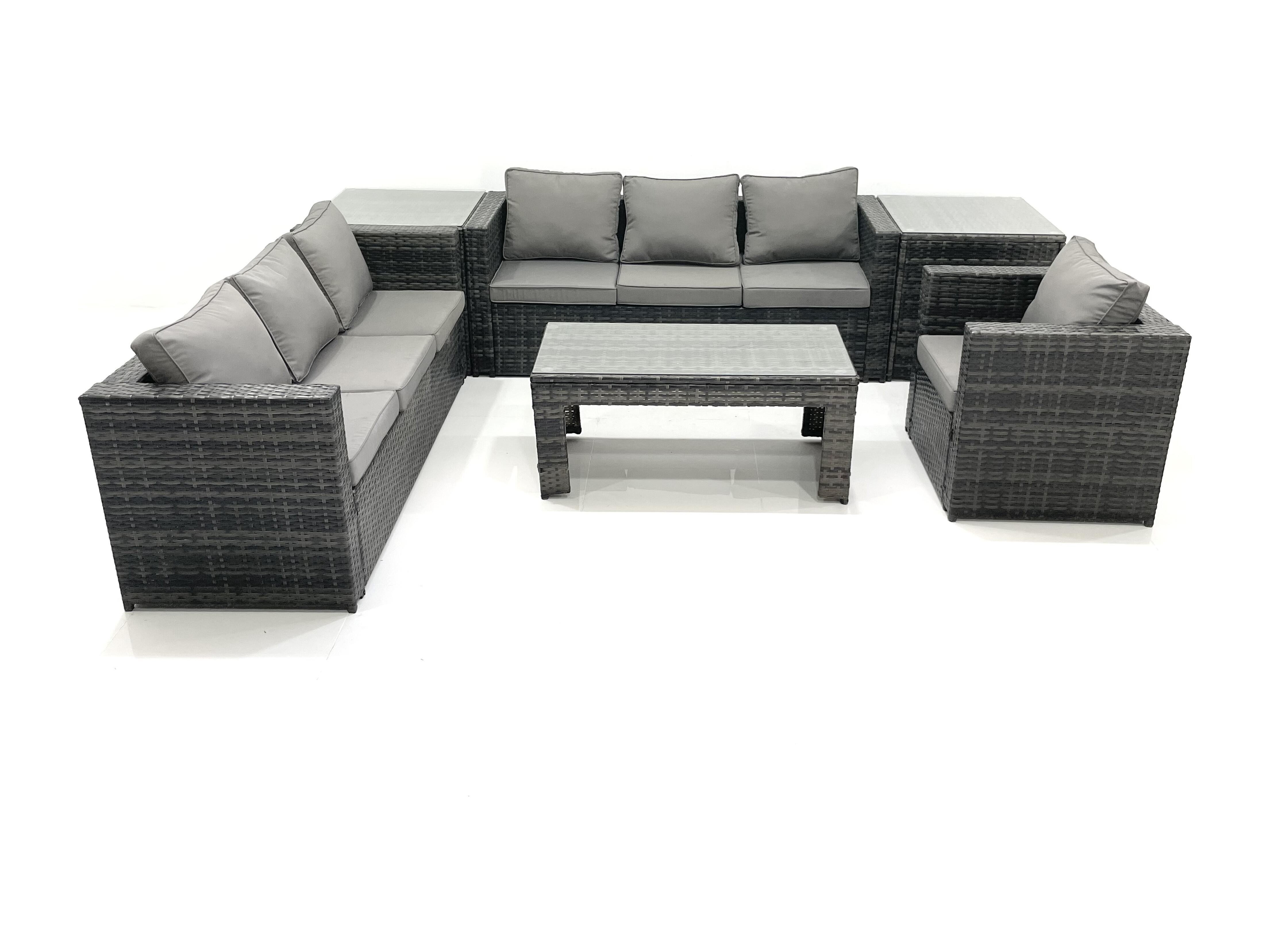 7 places Salon de jardin Ensemble de canapés en rotin avec Table basse Fauteuil 2 Tables d'appoint Gris foncé mixte