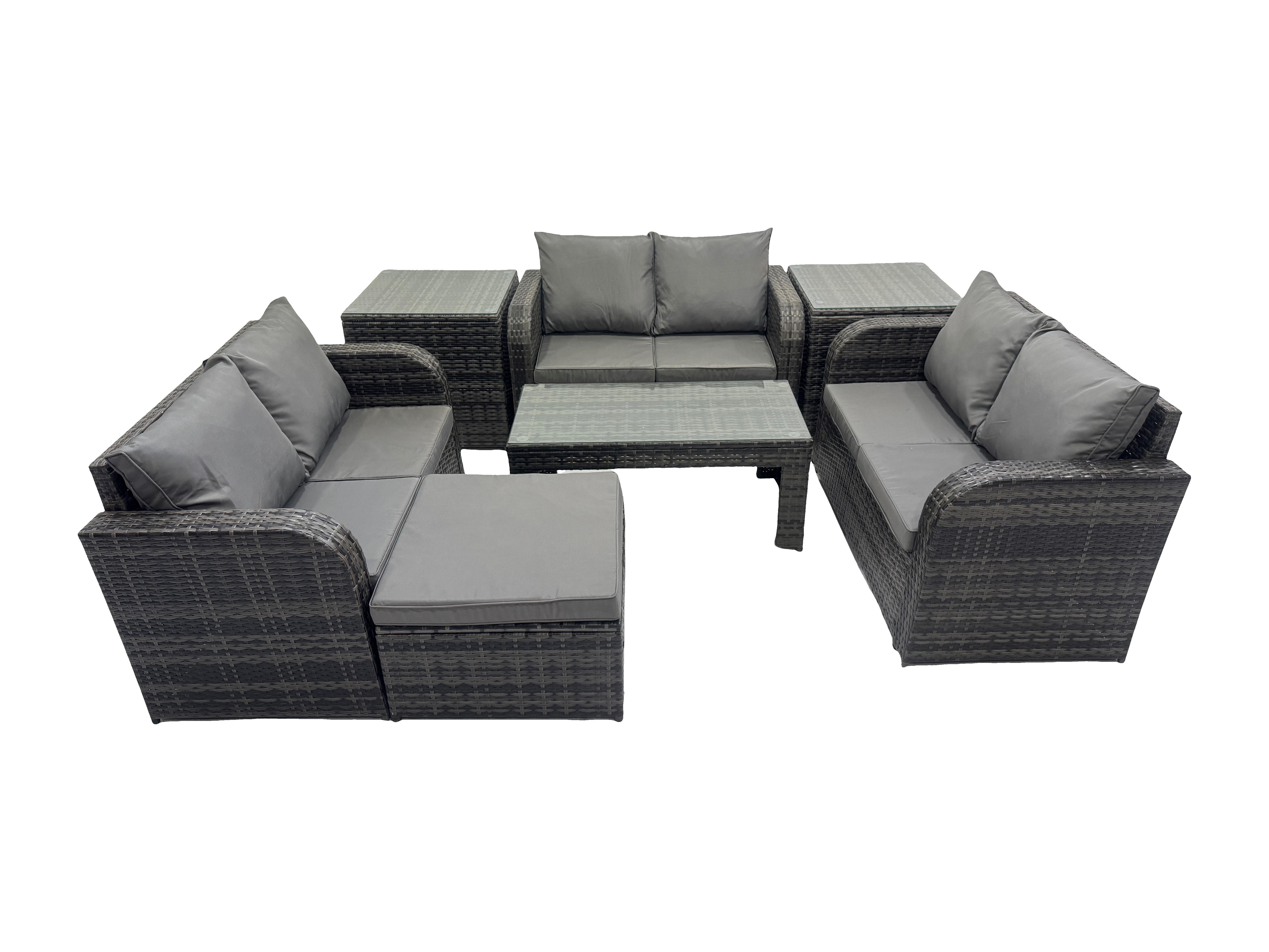7 places Salon de jardin Meubles de jardin avec Table basse Canapé à deux places 2 Tables d'appoint Grand tabouret Gris foncé mixte