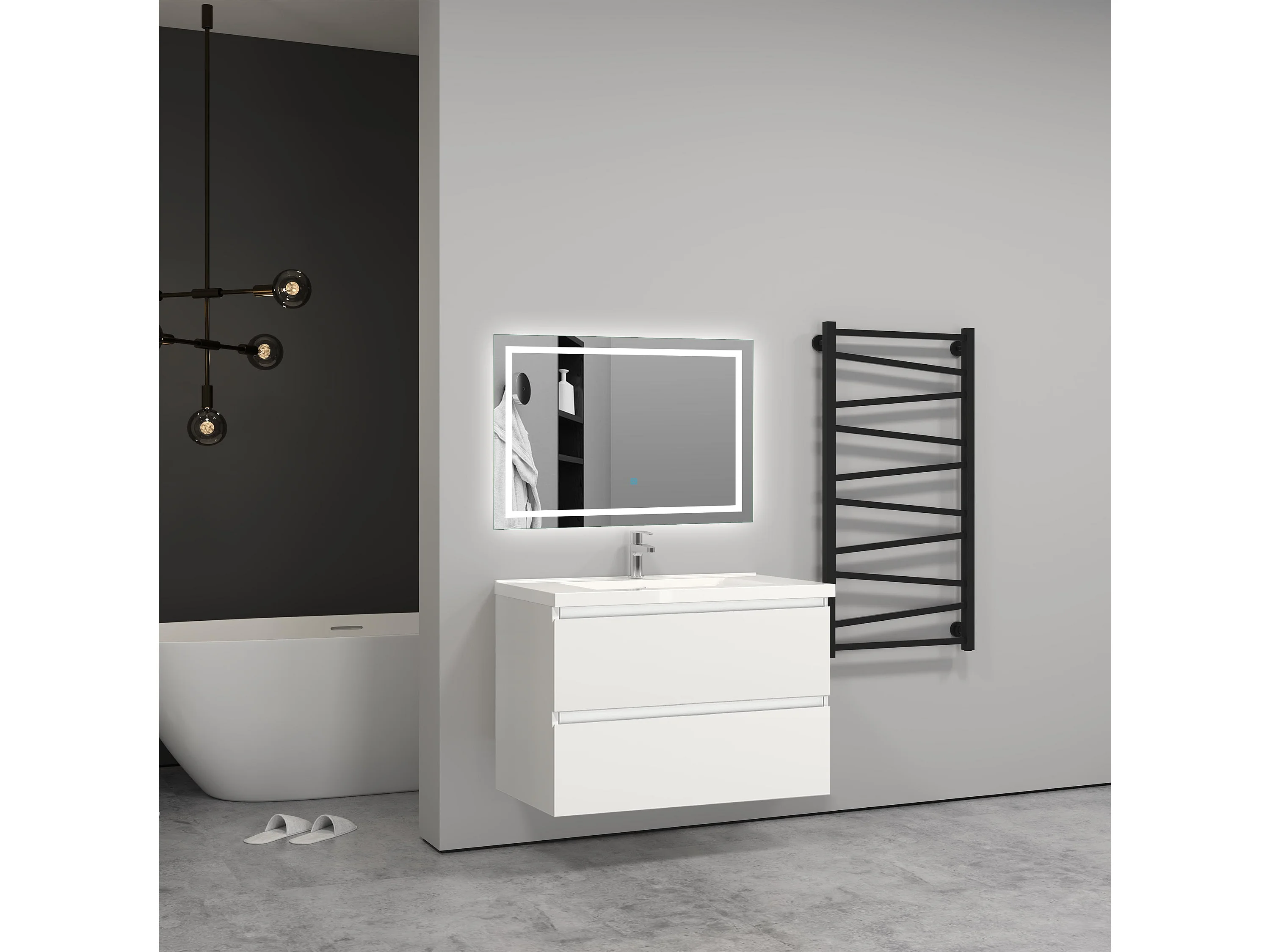 Meuble salle de bain blanc avec 2 tiroirs à une fermeture amortie avec une vasque à suspendre 79x44.5x52(L*W*H)cm