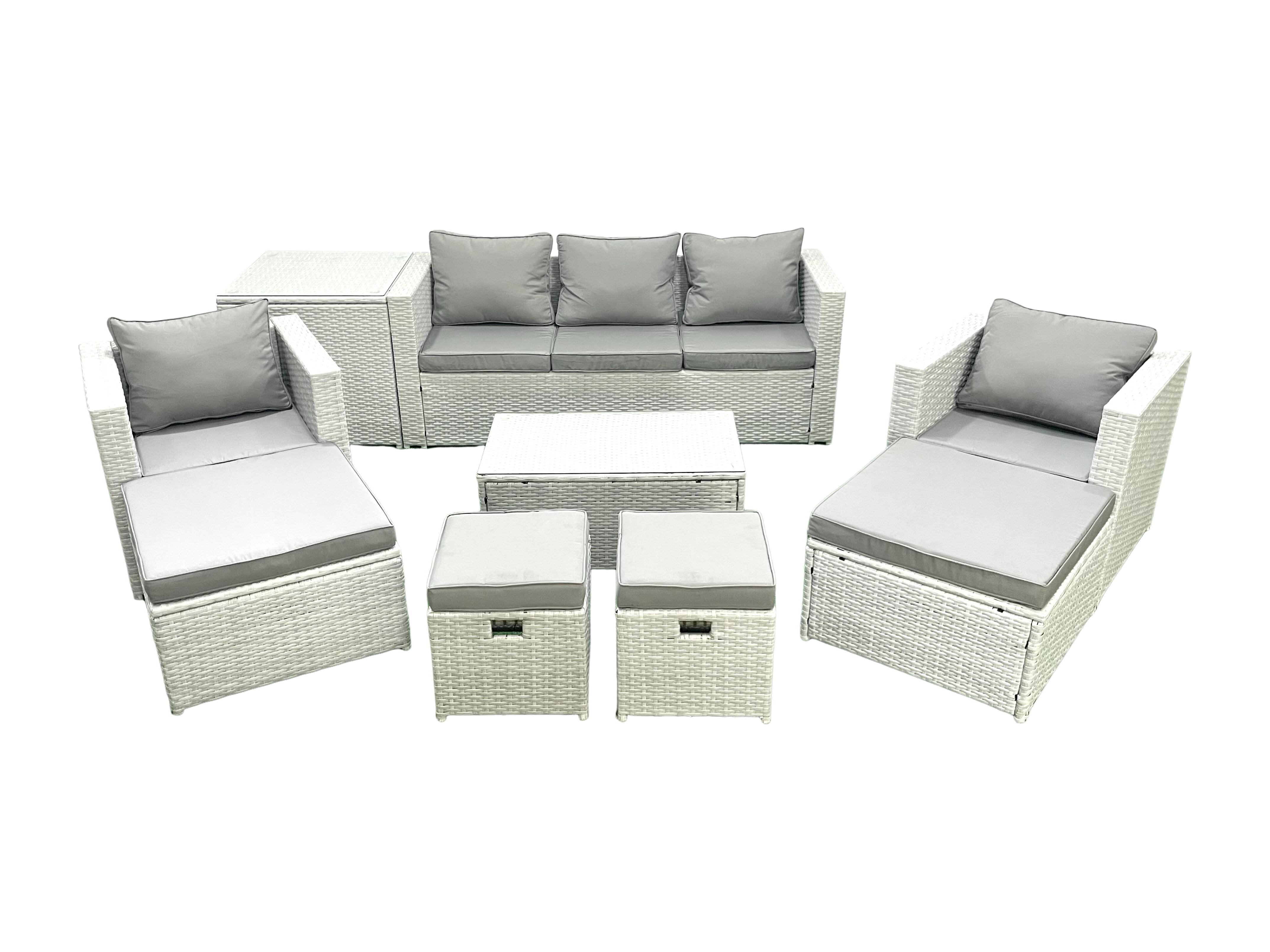 9 Pièces Salon de jardin Canapé de jardin avec Fauteuil Table basse Table d'appoint 4 Tabourets Gris clair mixte