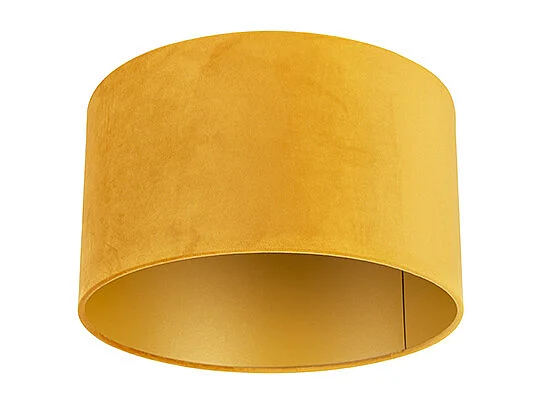 Abat-jour en velours jaune 35/35/20 avec intérieur doré