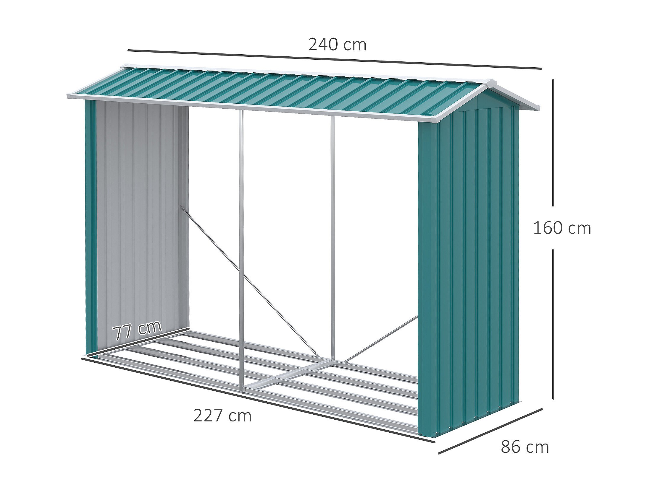 Abri bûches de stockage pour bois de chauffage - 240L x 86l x 160H cm - tôle acier galvanisé vert