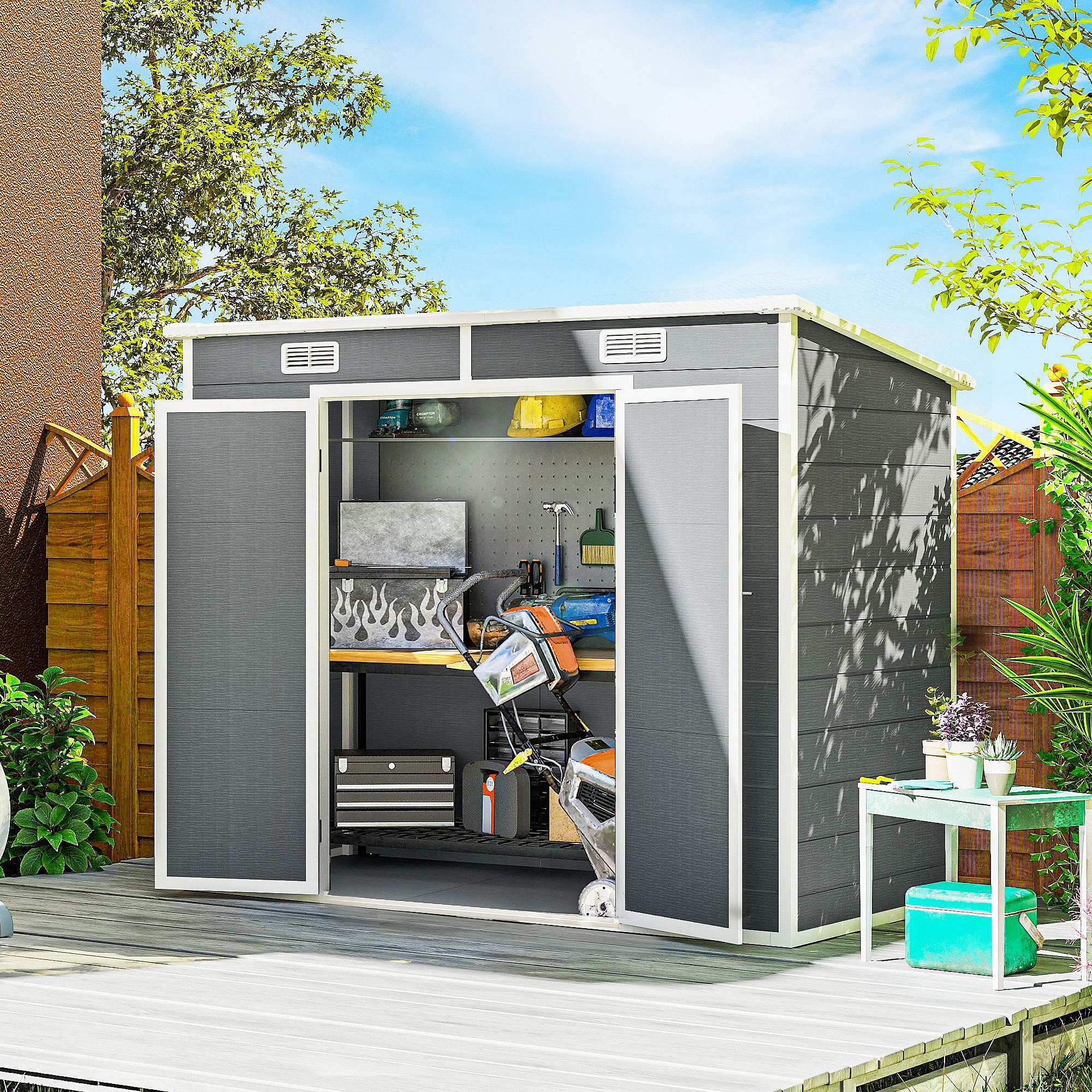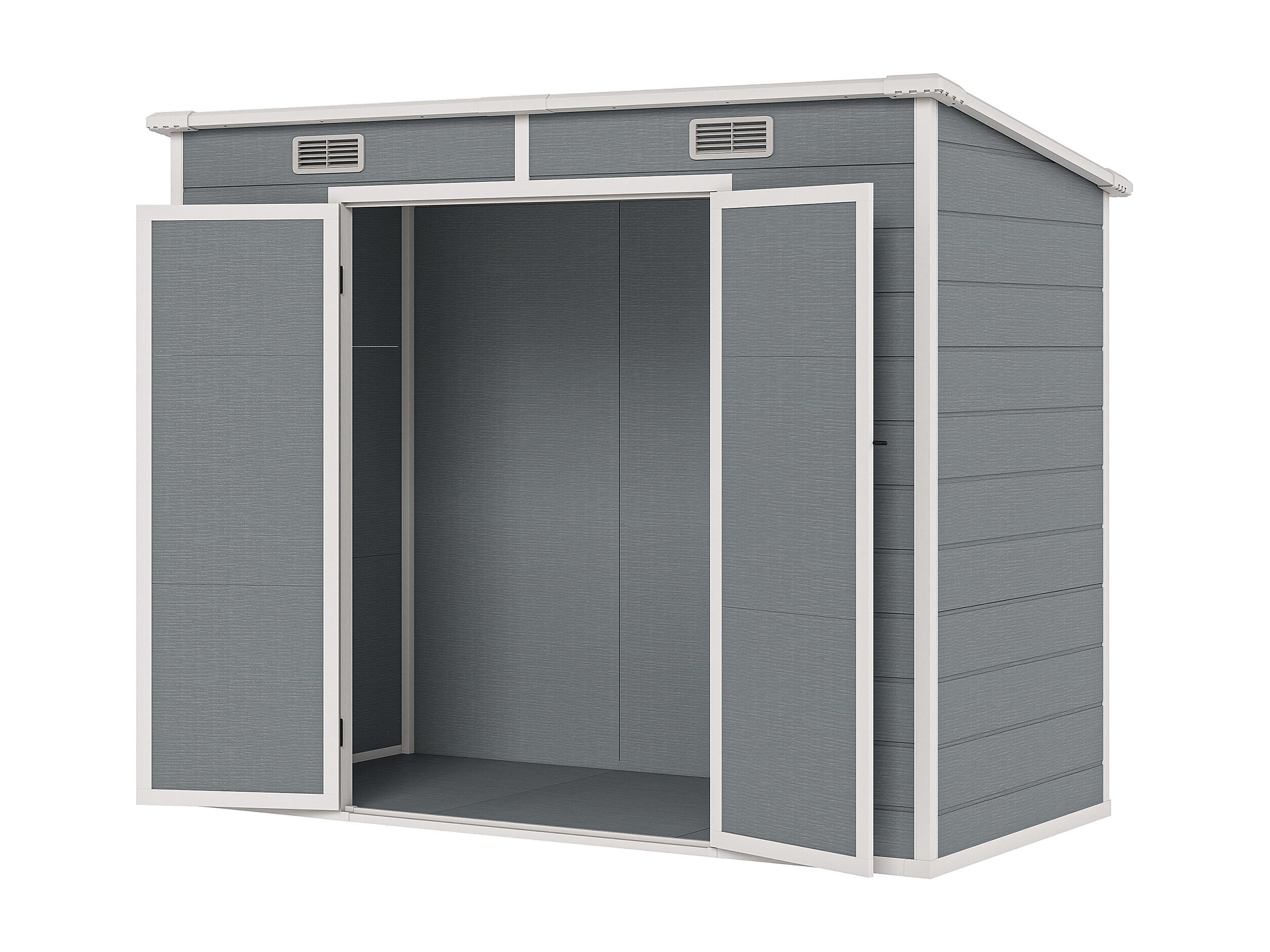 Abri de jardin 2,54 m² dim. 2,4 x 1,3 m - fondation incluse - fenêtre, 2 portes, aérations - alu PP gris blanc
