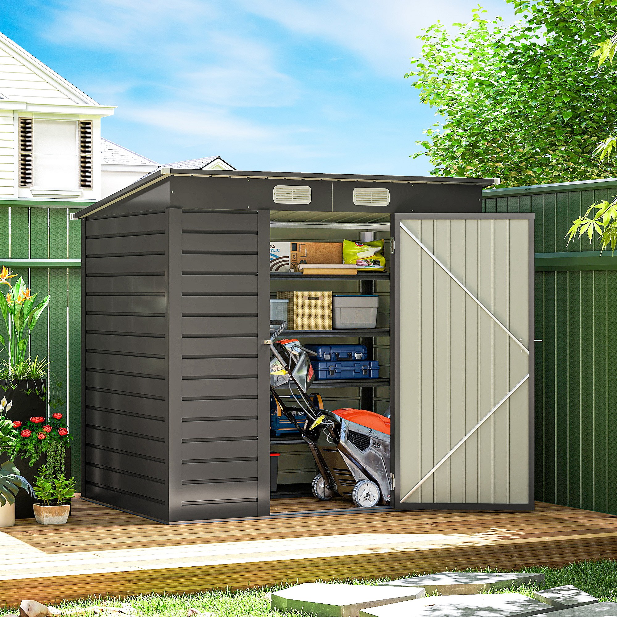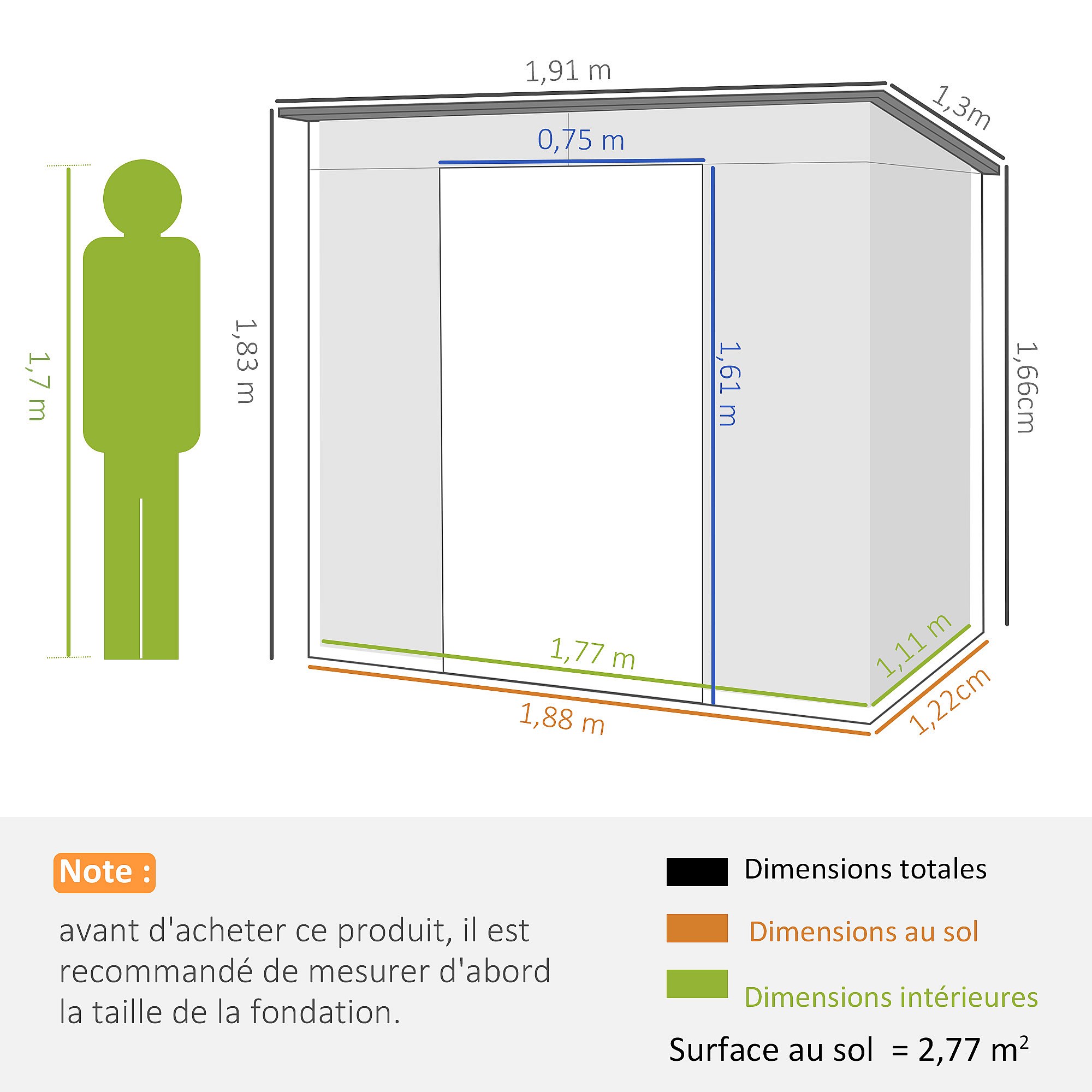 Abri de jardin cabanon dim. 191L x 130l x 166H cm porte verrouillable ventilations tôle acier ondulé gris