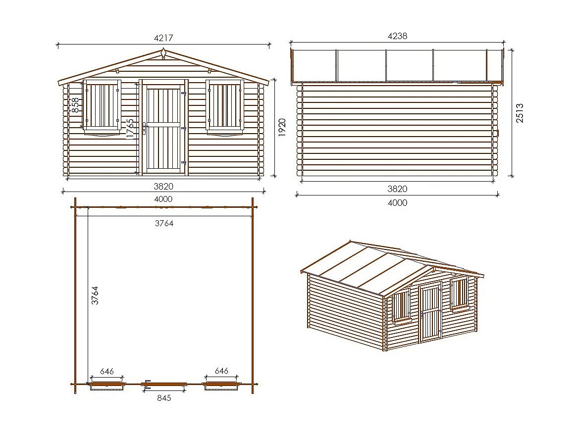 Abri de jardin en bois - 16m2 - 4x4m - Ep. 28mm - Couleur: naturel - DOM149 - ALTANKA