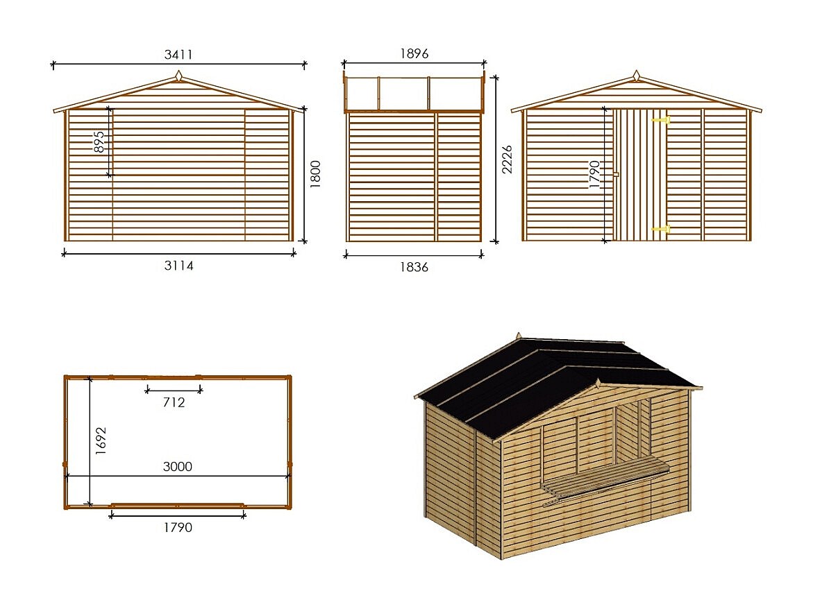 Kiosque/ stand de marché/ de vente 5,72 m2 - 3,11x1,84 m - 19 mm - DOM606 - ALTANKA