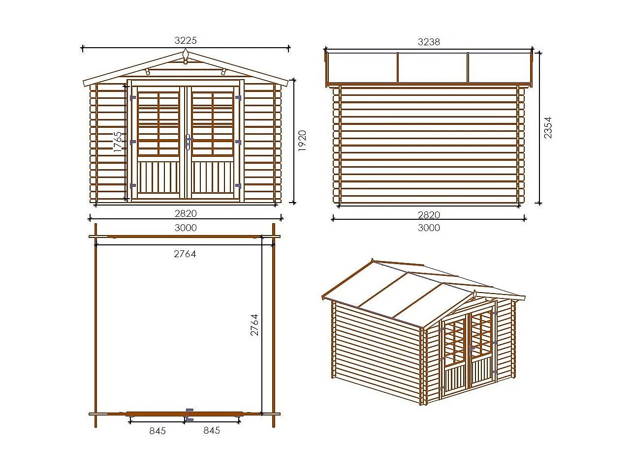 Abri de jardin en bois - 9m2 - 3x3m - Ep. 28mm - Couleur: naturel - DOM530 - ALTANKA