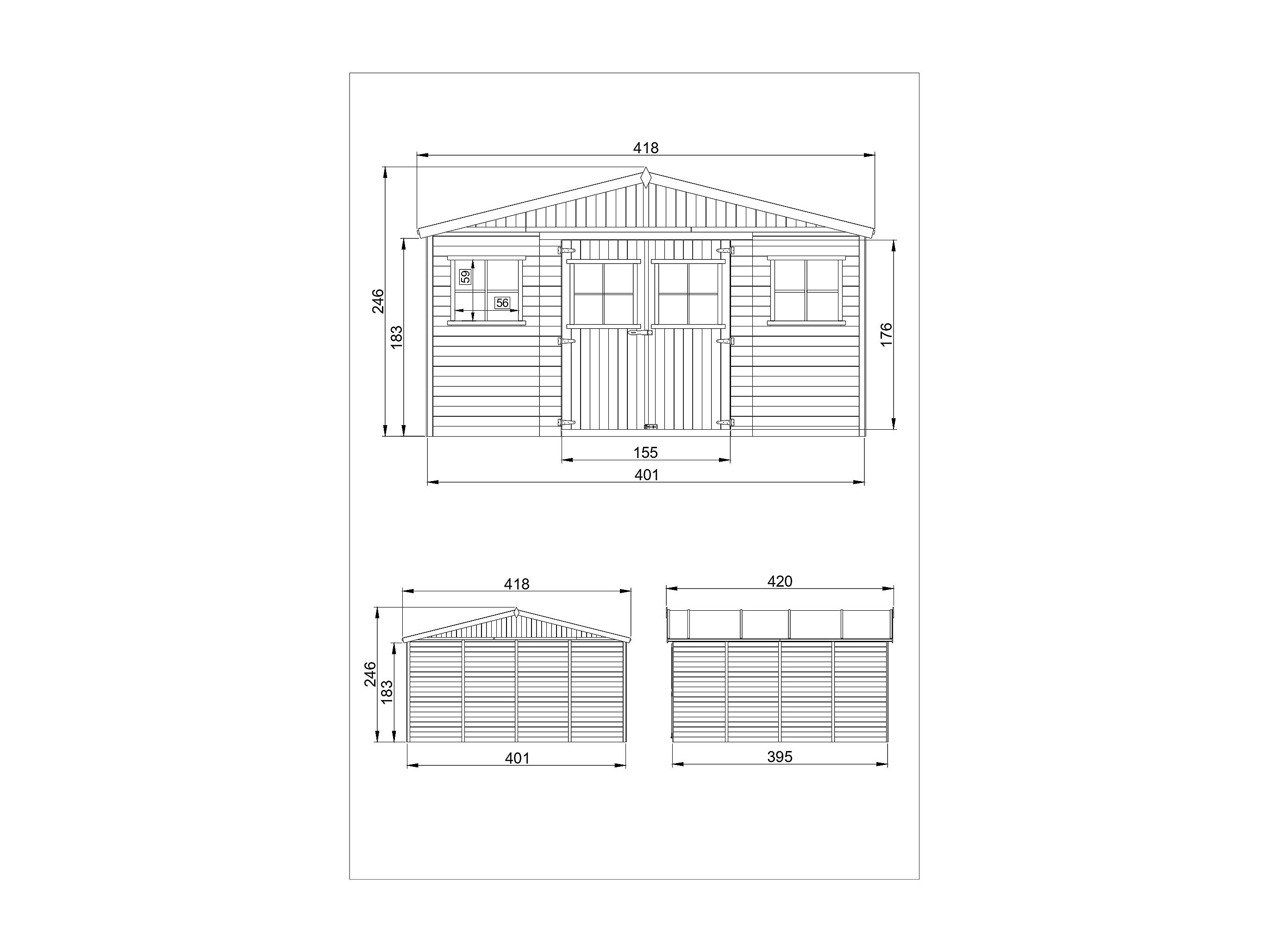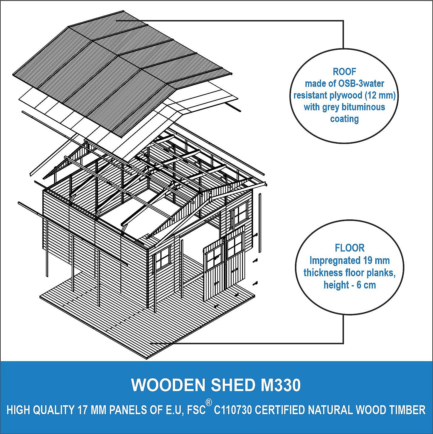 Abri de jardin en bois AVEC PLANCHER IMPRÉGNÉ - H246 x 418 x 420 cm/ 16 m² - M330+M330G