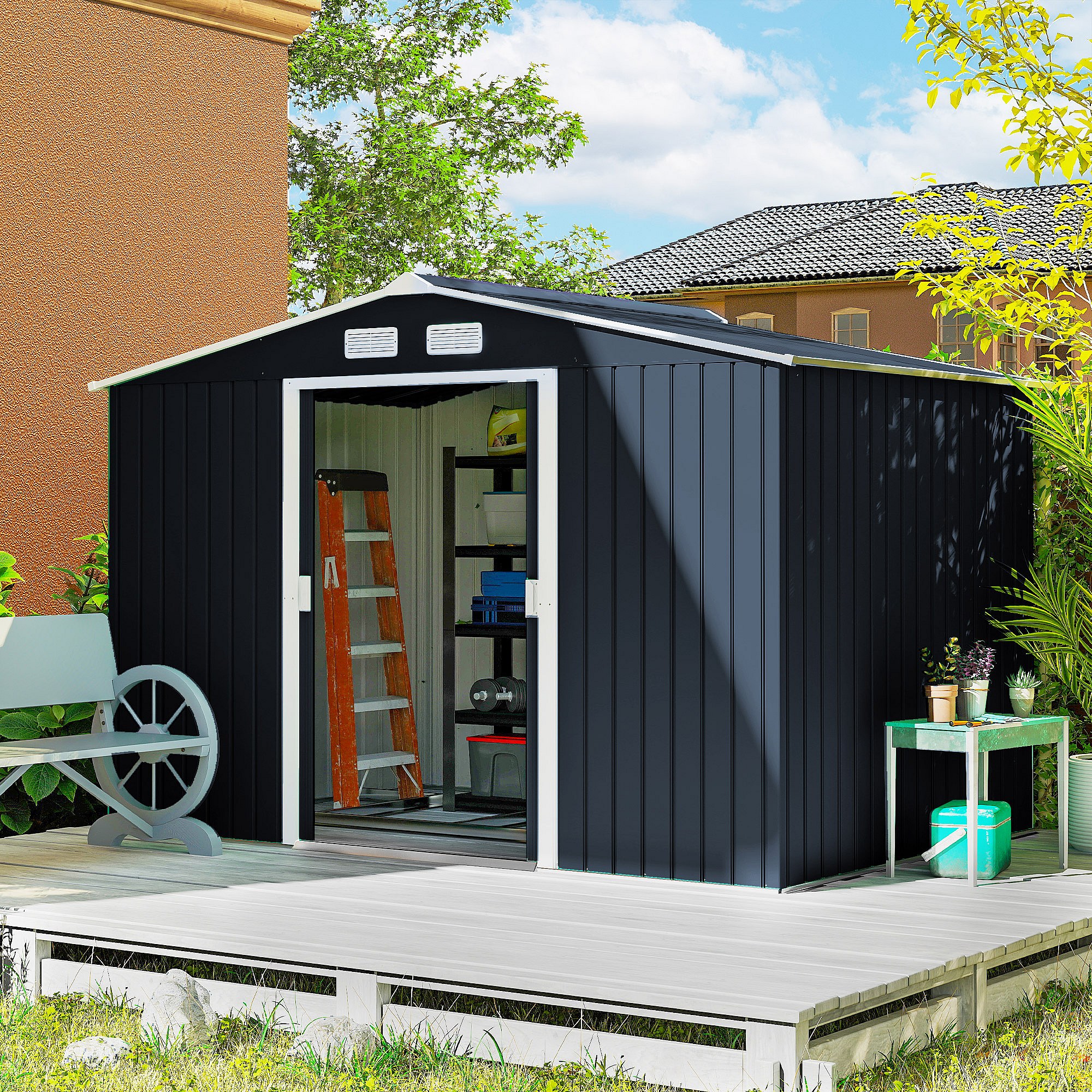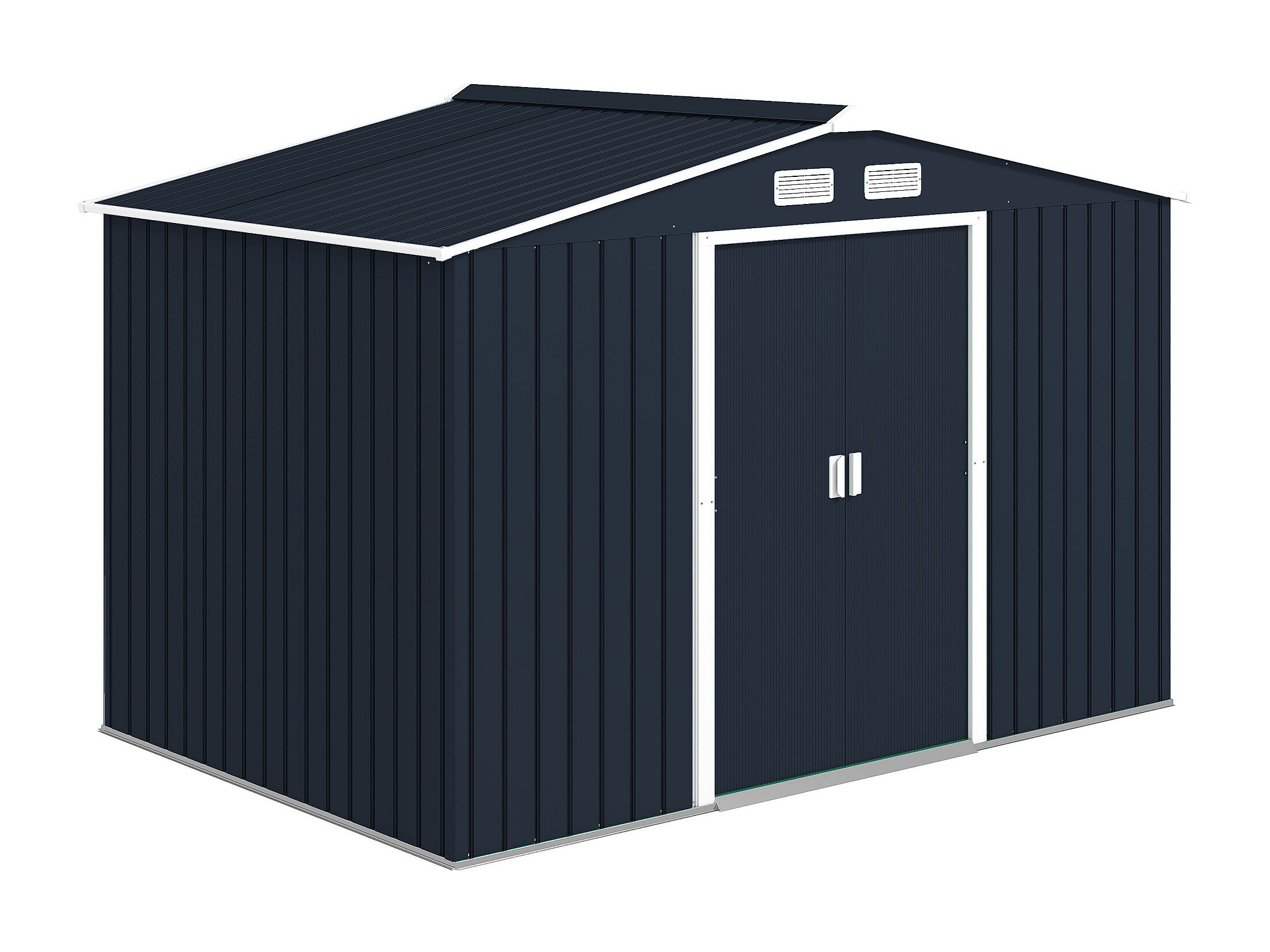Abri de jardin - remise pour outils - cabanon double porte coulissante - fondation incluse - dim. 277L x 191l x 192H cm - tôle d'acier ondulée anthracite