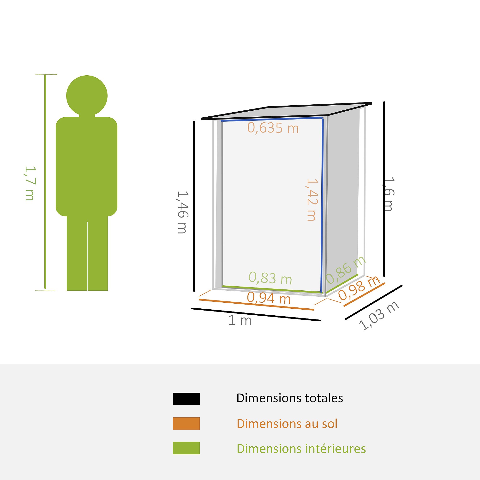 Abri de jardin - remise pour outils - cabanon porte verrouillable - dim. 1L x 1,03l x 1,6H m - tôle d'acier ondulée anthracite