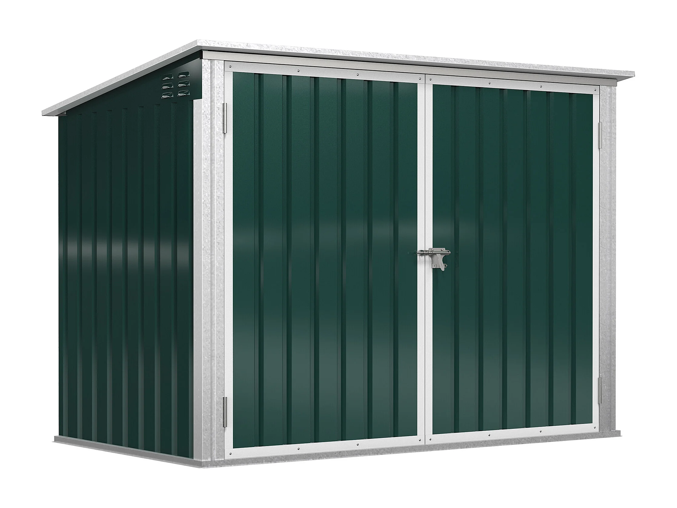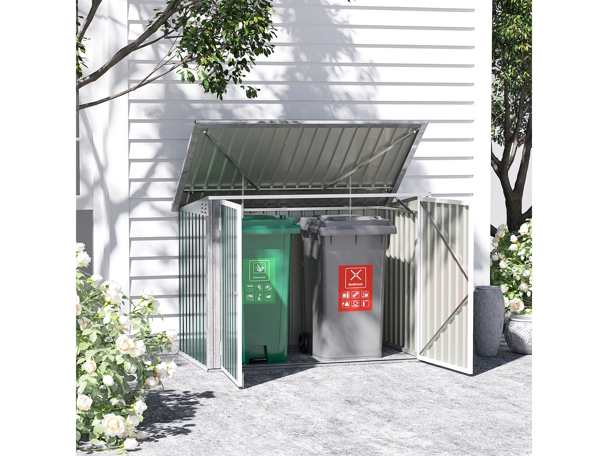 Abri de poubelle jardin - cache poubelle - 2 portes verrouillables, toit ouvrant - tôle d'acier blanc vert