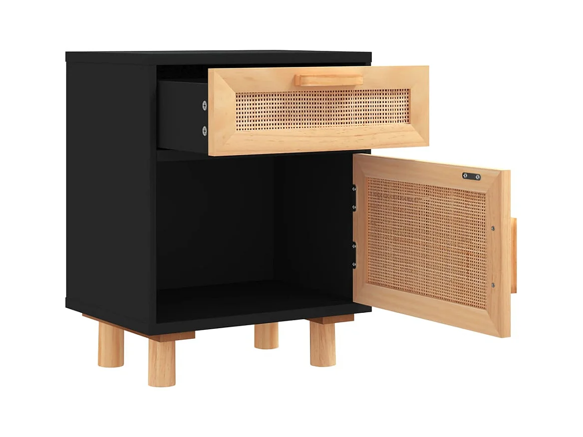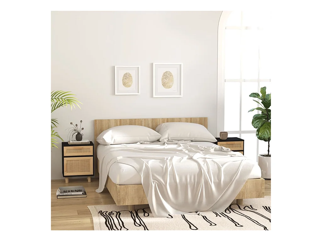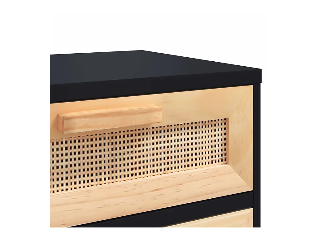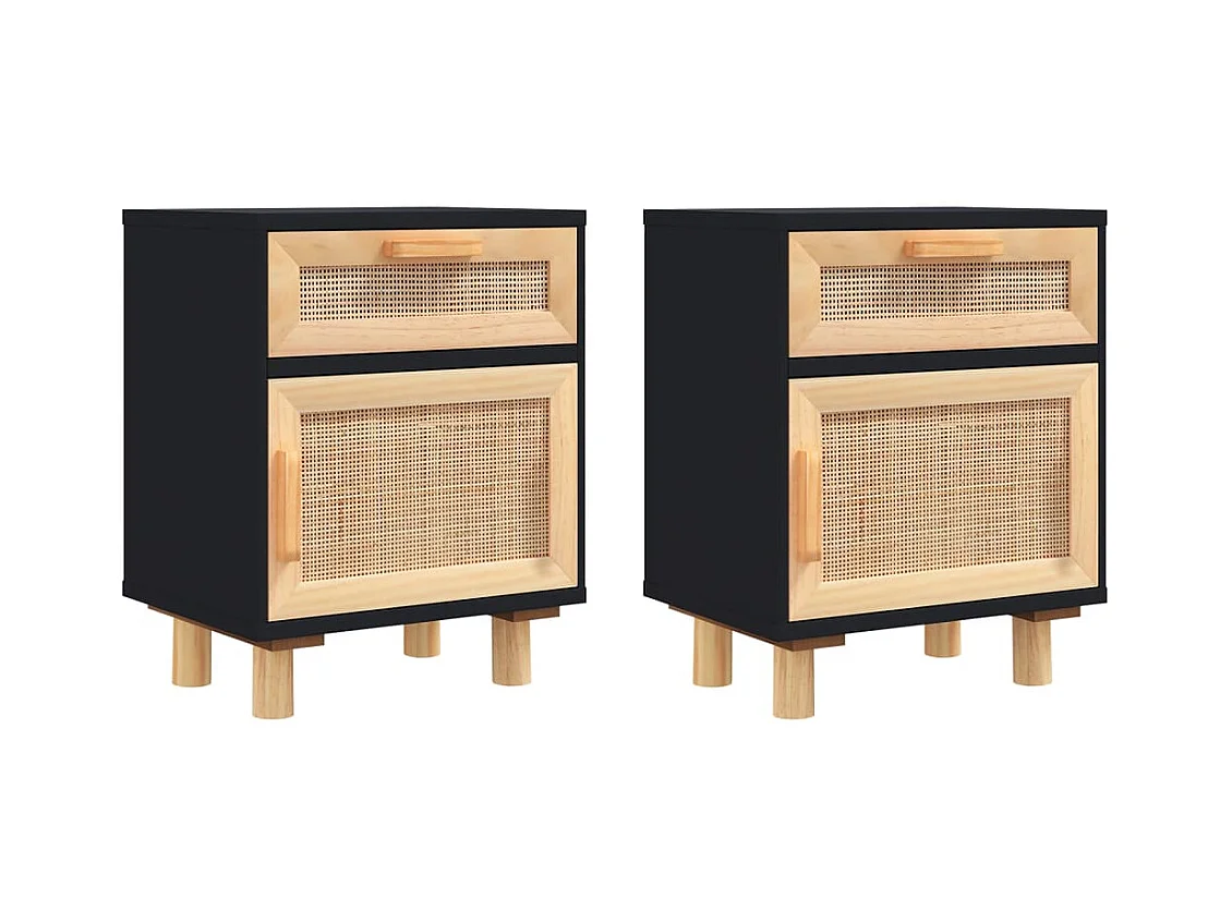 Adrian Tables de chevet 2 pcs Noir Bois de pin massif et rotin l