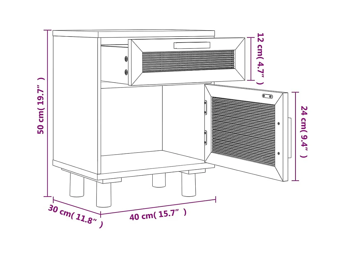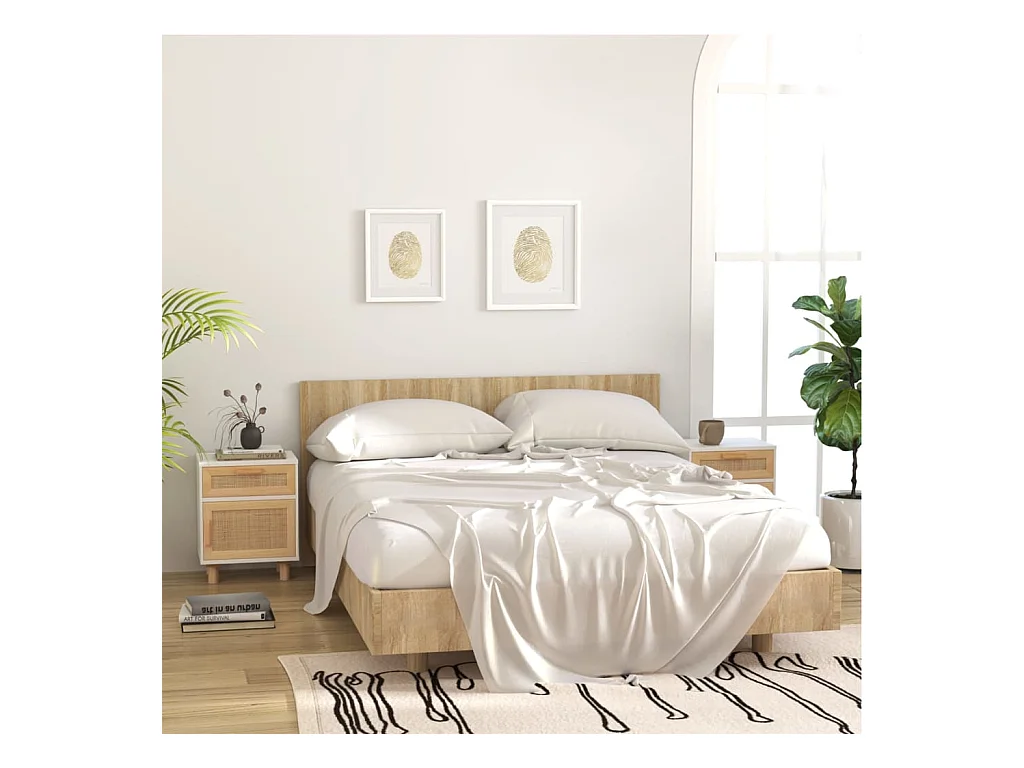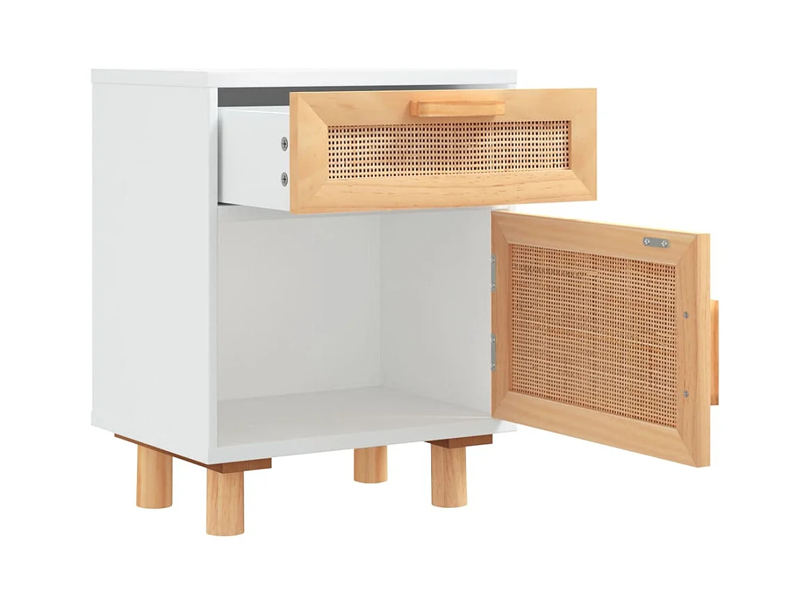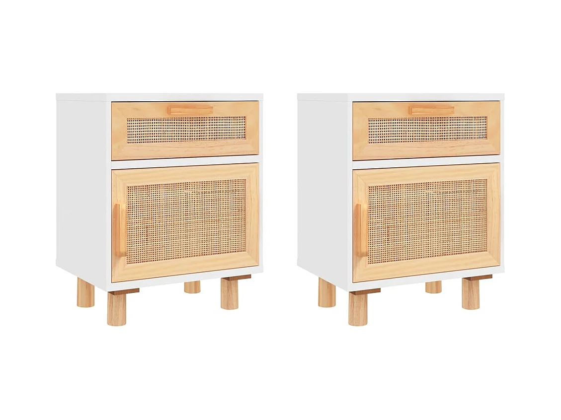 Adrian Tables de chevet 2pcs Blanc Bois de pin massif et rotin l