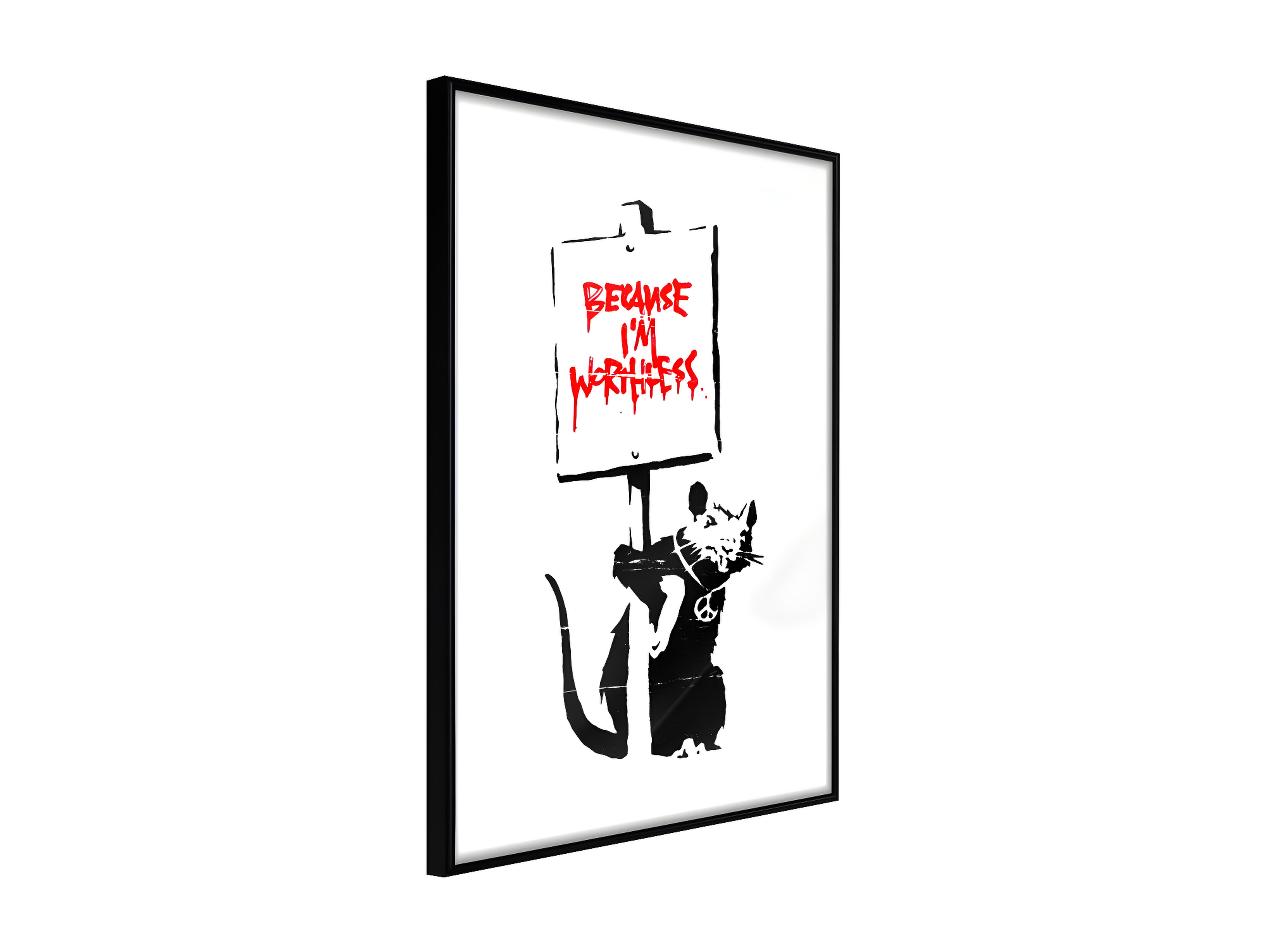 Affiche Murale Encadrée "Banksy Because I'm Worthless" 40 x 60 cm Noir