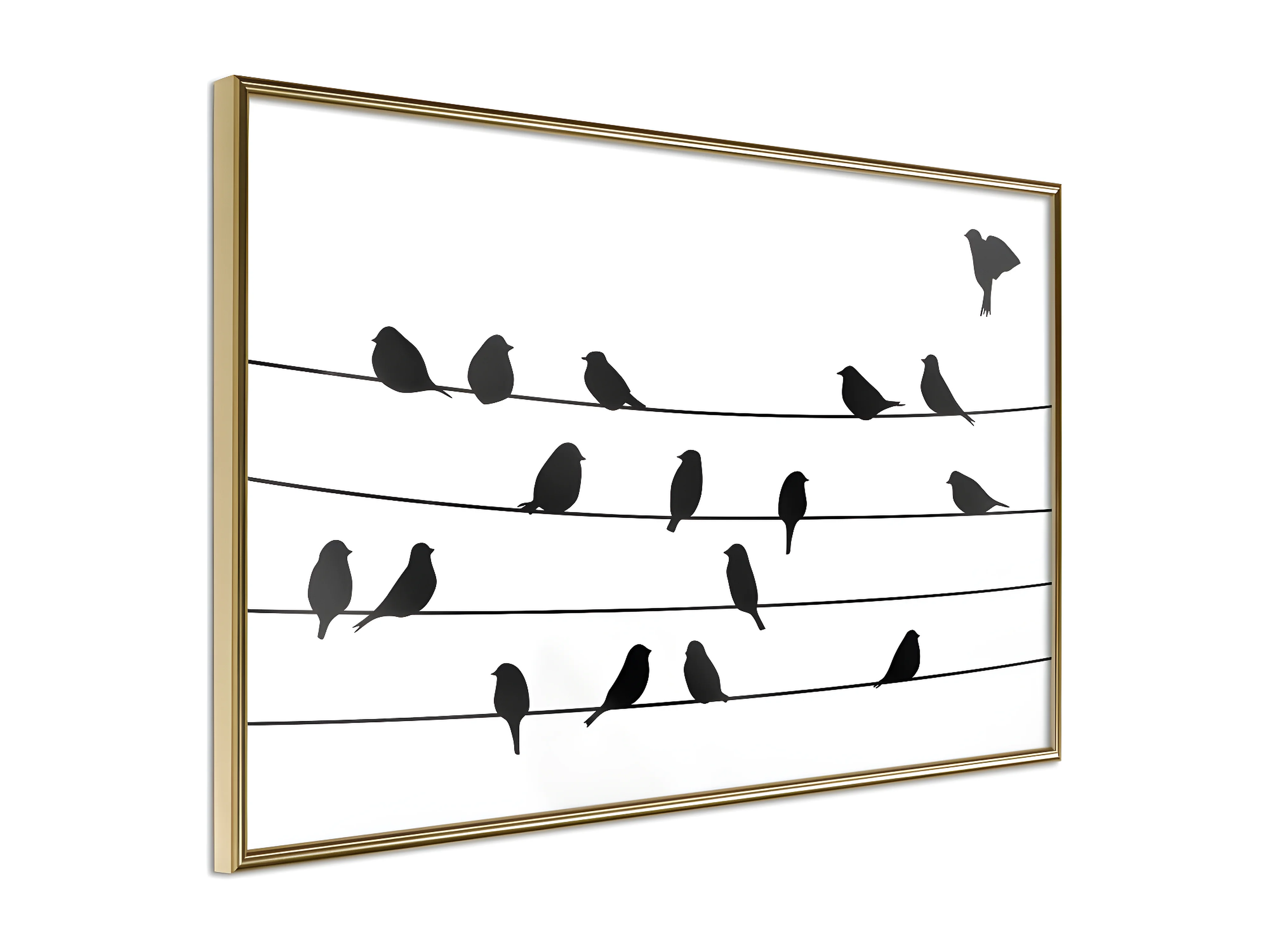 Affiche Murale Encadrée "Birds Council Meeting" 30 x 20 cm Or