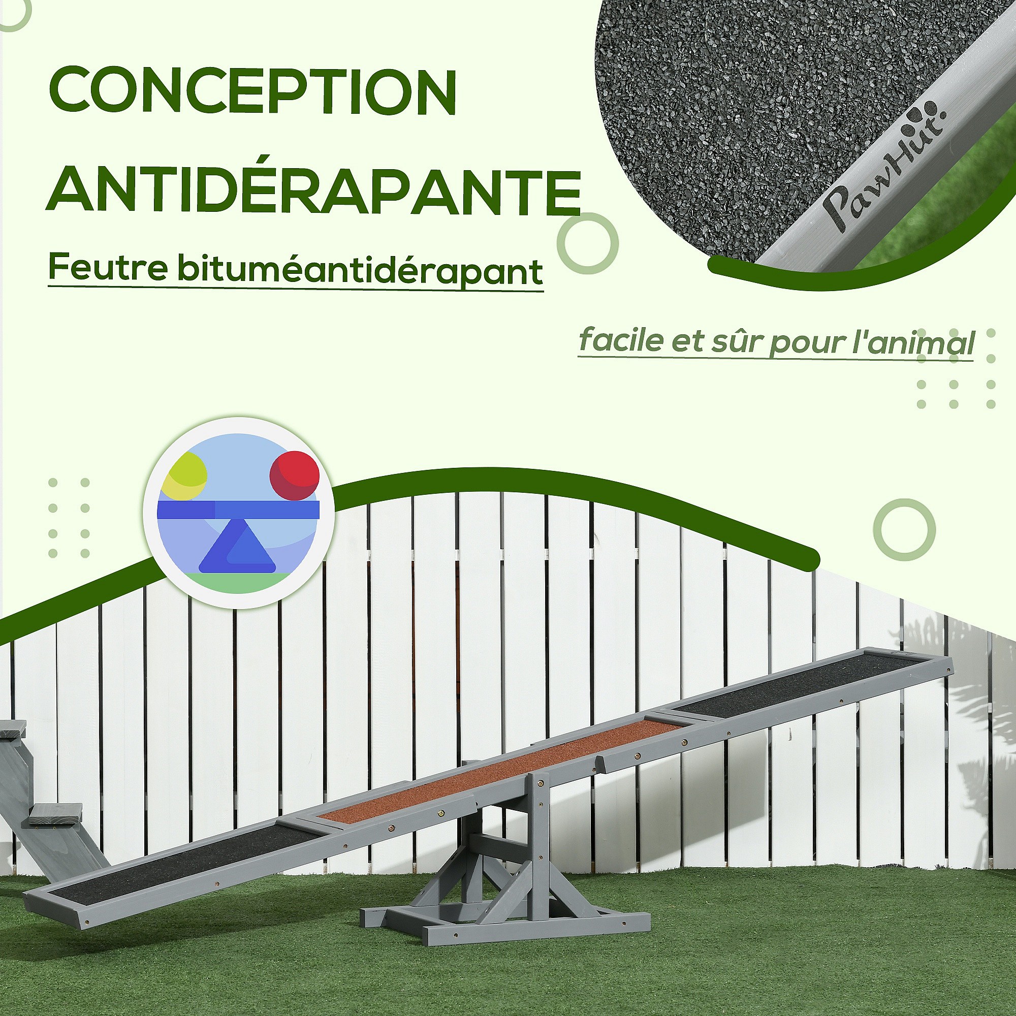 Agility sport pour chien bascule - bascule pour chien - équipement entrainement chien - bois sapin pré-huilé feutre bitumé antidérapant brique gris