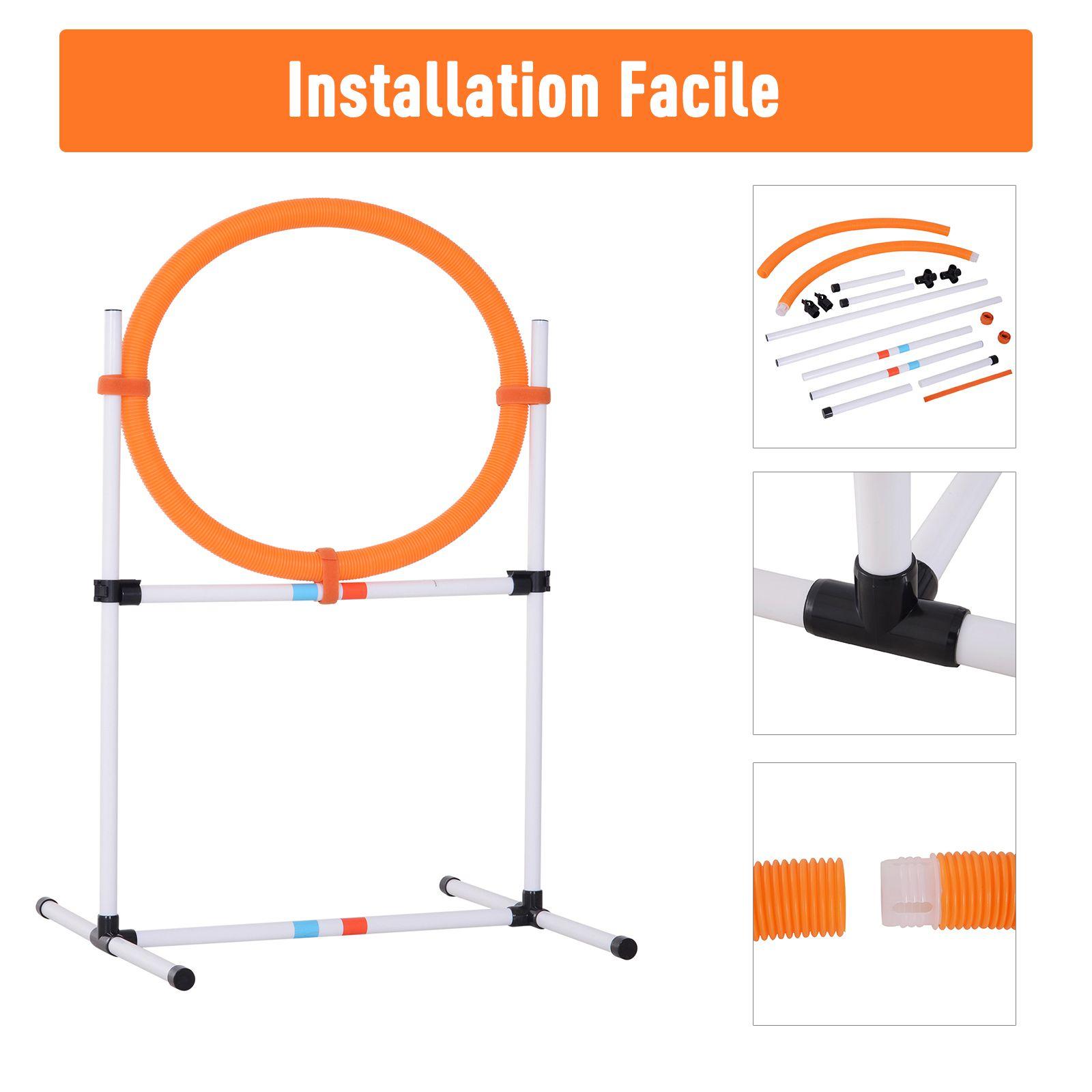 Agility sport pour chiens anneau d'agilité et obstacle 2 en 1 avec sac de transport plastique blanc orange