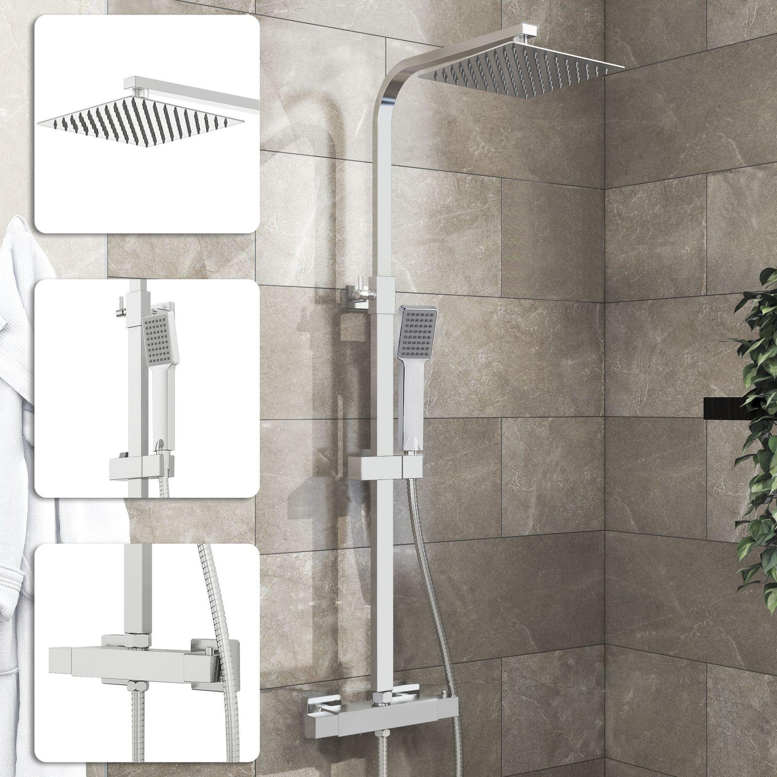 AICA Colonne de douche thermostatique en acier inoxydable, Pomme 200mm+Douchette 3 jets, Réglable en hauteur, Chromé