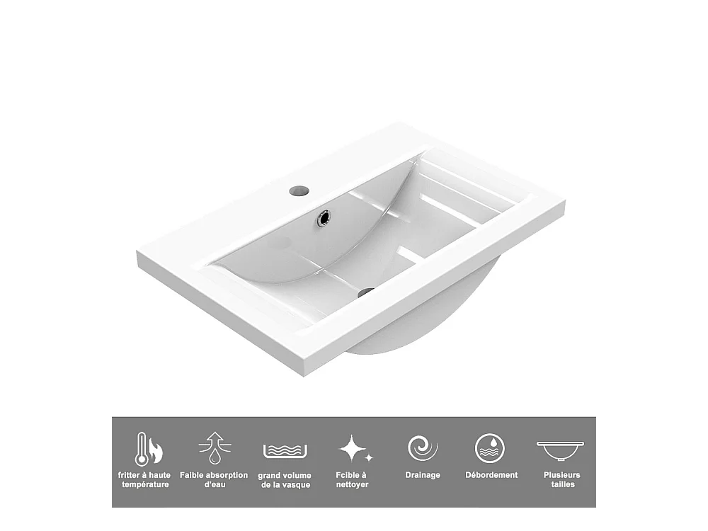 AICA Ensemble meuble de salle de bain Vasque 50cm + 2 tiroirs + lavabo + LED Miroir Rond 60cm + Colonne, Chêne