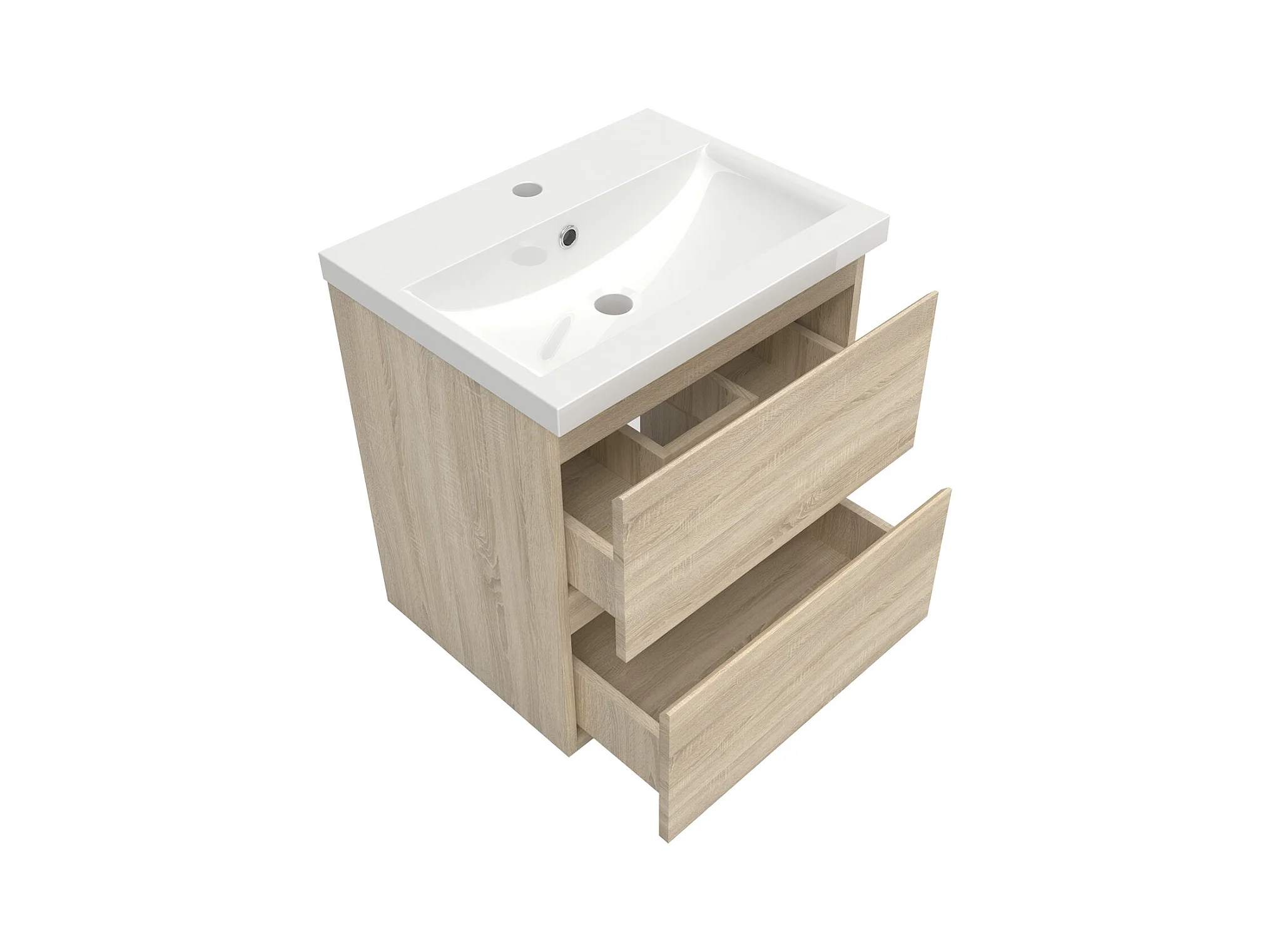 AICA Ensemble meuble de salle de bain Vasque L.50cm 2 tiroirs + lavabo + LED Miroir Rond 60cm + Colonne,Chêne