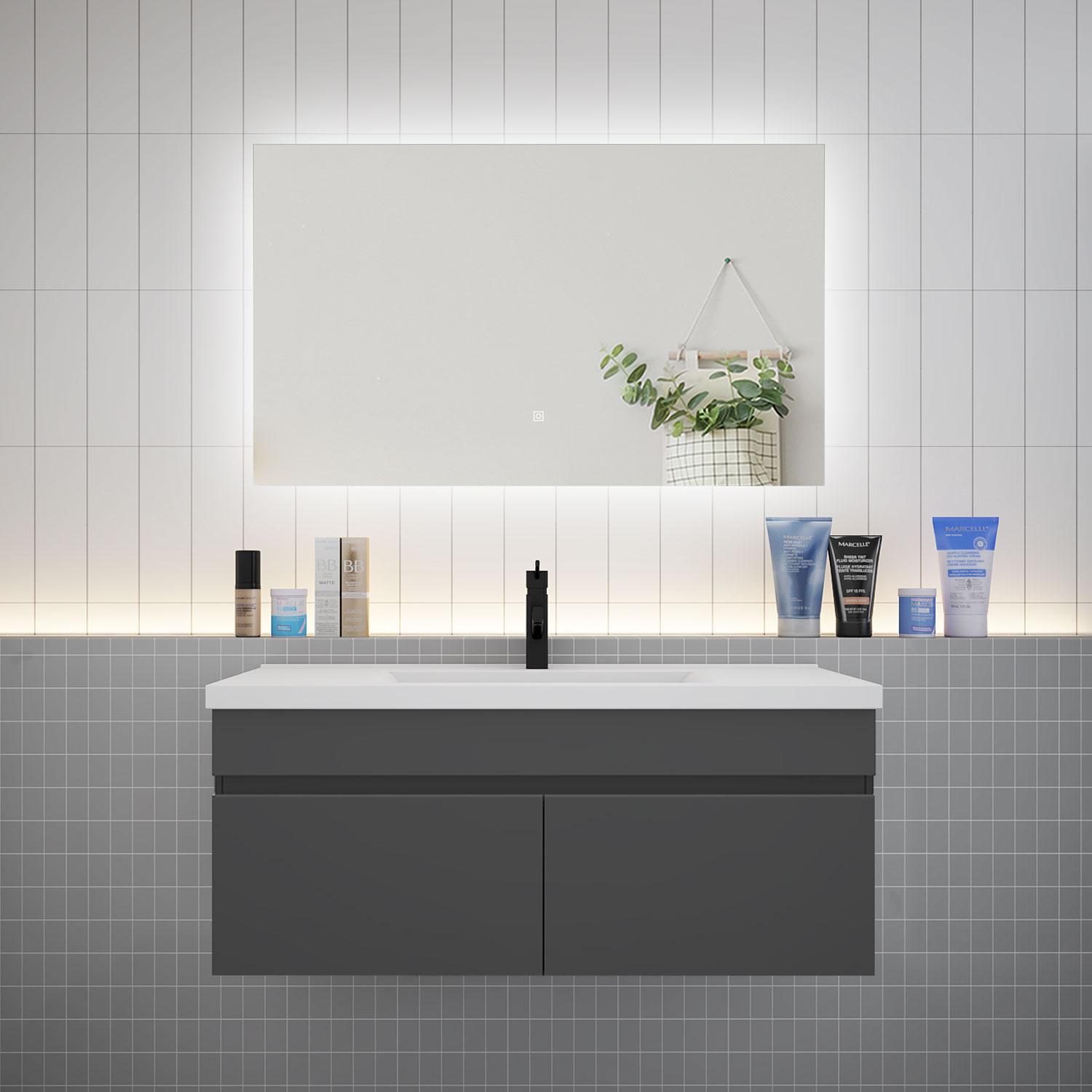 AICA Ensemble meuble Salle de Bain Anthracite avec vasque L.100cm + Miroir LED 100x60cm