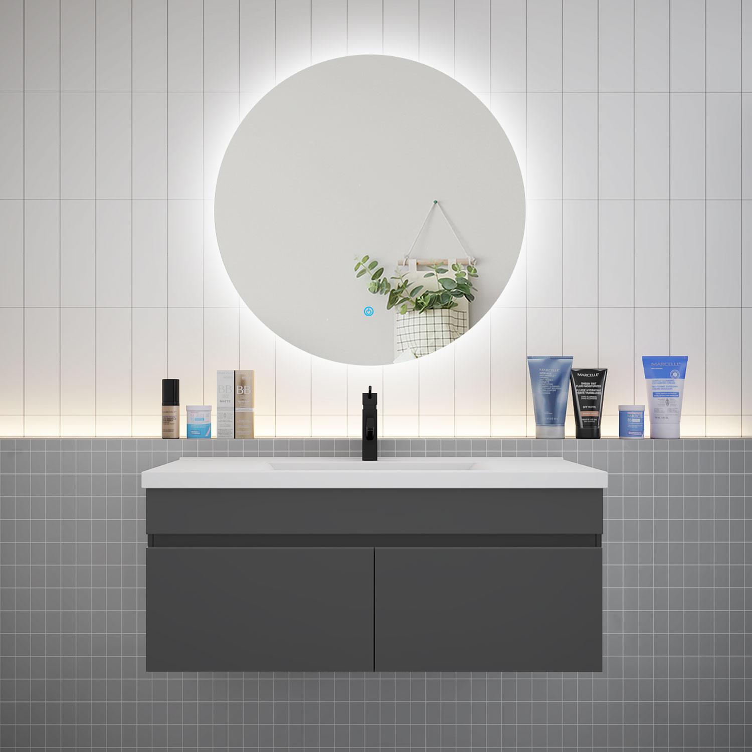 AICA Ensemble meuble Salle de Bain L.100cm Anthracite + vasque + Miroir 100cm Dimmable Rond