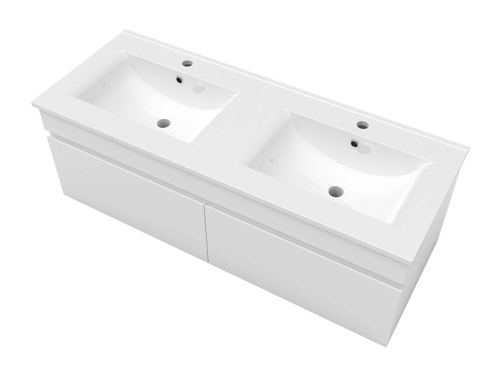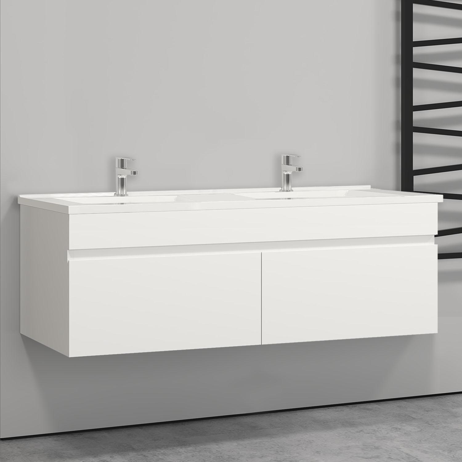 AICA Ensemble meuble Salle de Bain suspendu Blanc avec 2 portes + double vasque en céramique, L x W x H:120x45x40cm