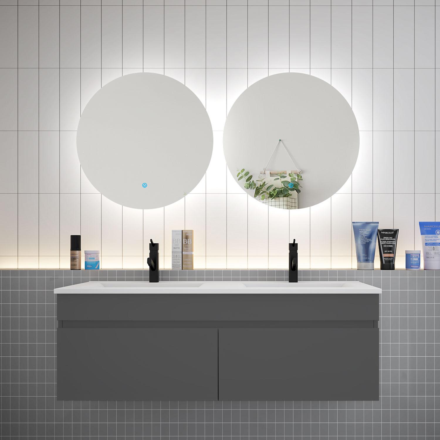 AICA Ensemble meuble Salle de Bain vasque L.120cm + 2 x Miroir LED Rond 60cm,Anthracite