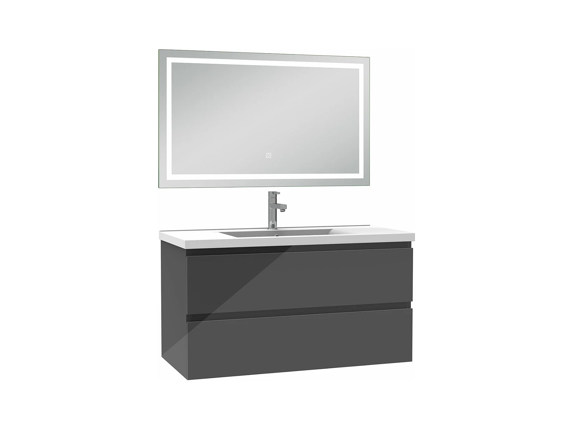 AICA Ensemble meubles salle de bains Anthracite 100cm,lavabo+miroir LED antibuée,3 couleurs dimmable+mémoire