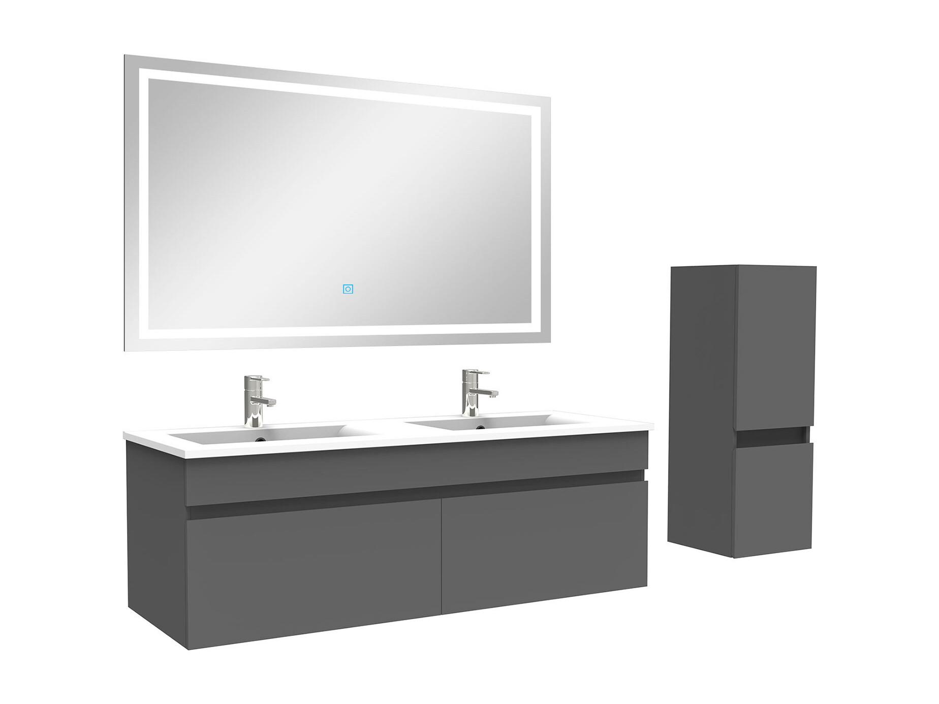 AICA Meuble Salle de Bain 120cm Anthracite + vasque + miroir lumineux + colonne