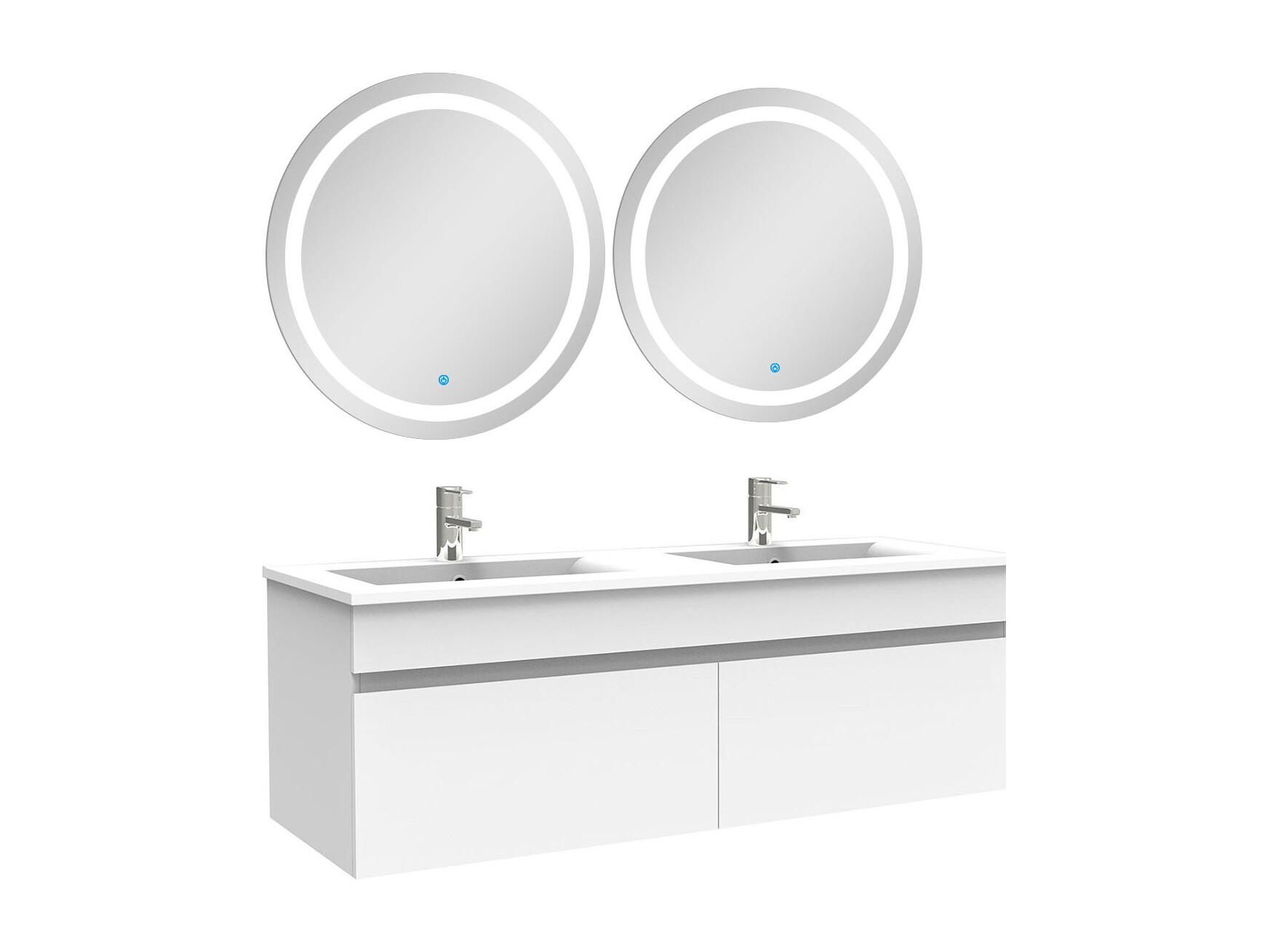AICA Meuble Salle de Bain 120cm Blanc double vasque + Deux Miroir Lumineux Rond