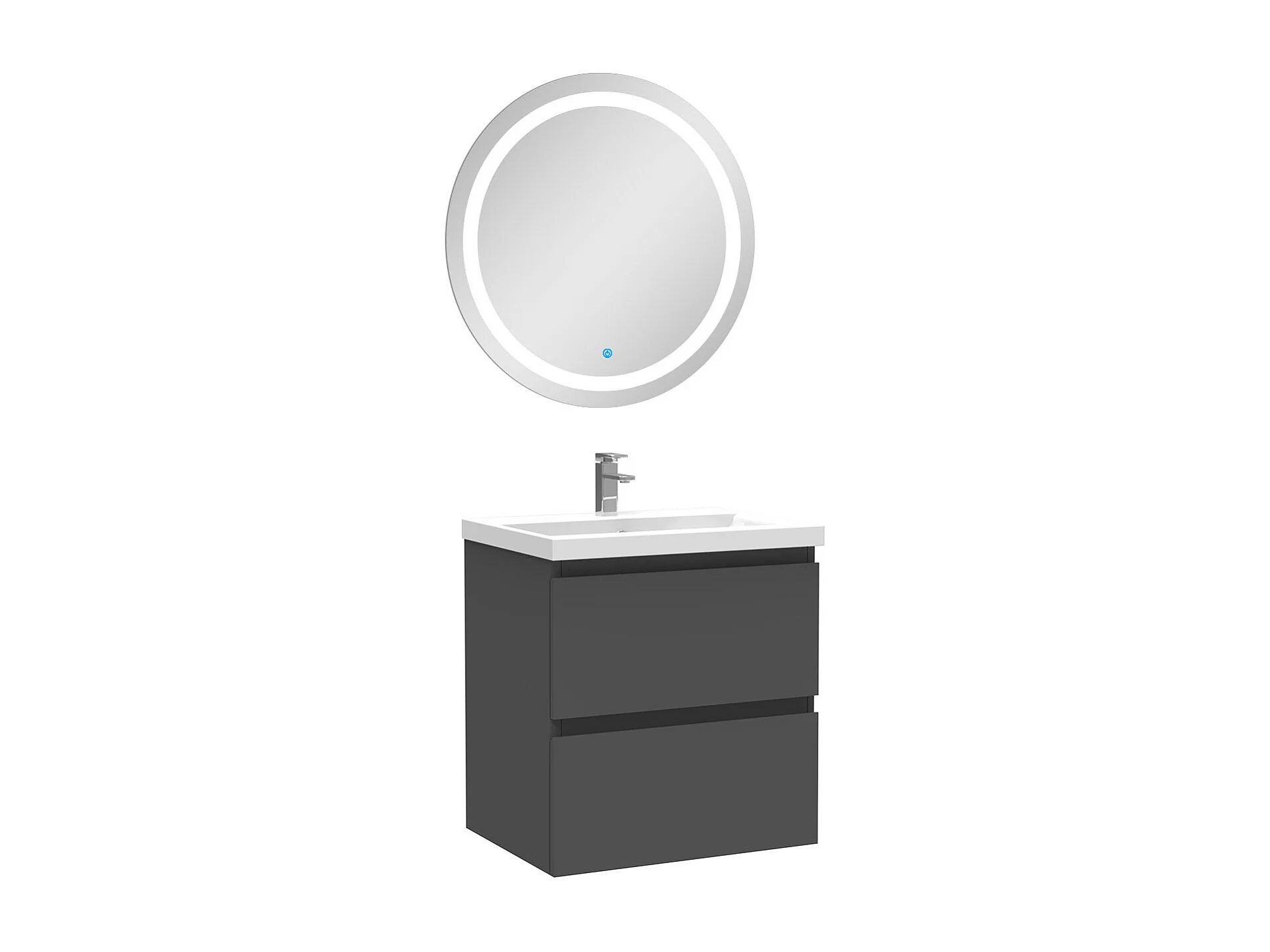 AICA Meuble Salle de Bain 50cm Anthracite simple vasque + Miroir Lumineux Rond