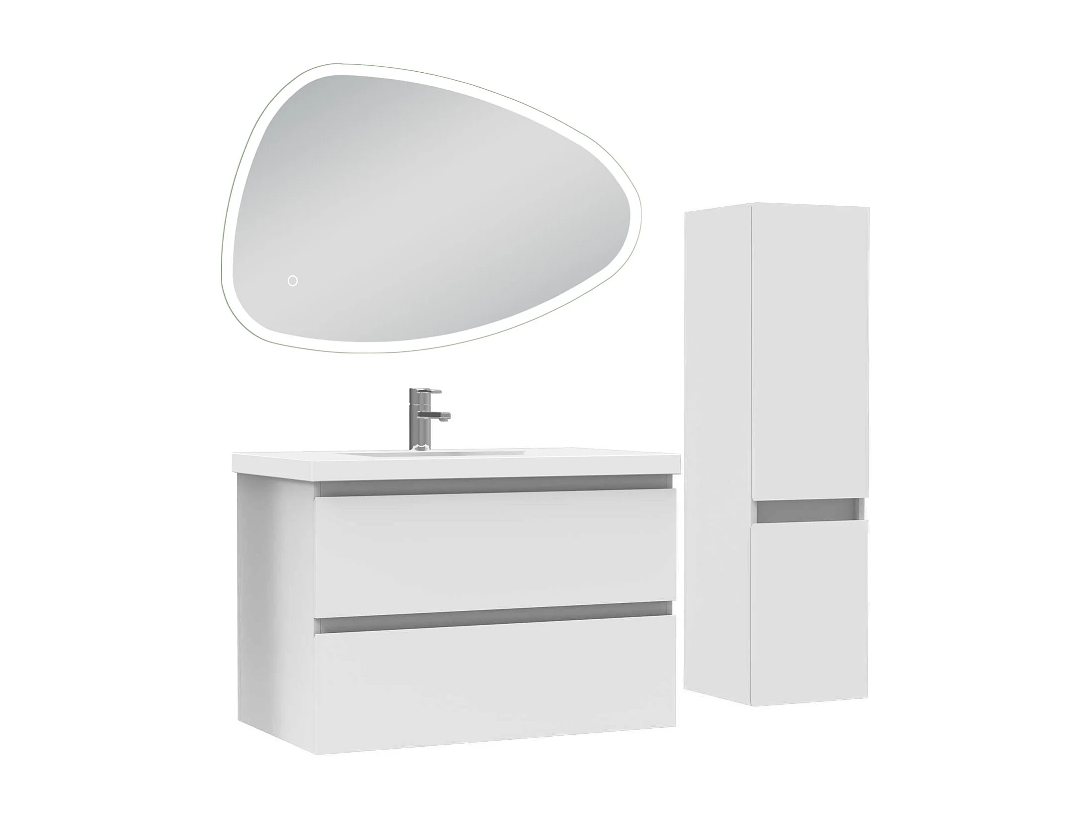 AICA Meuble Salle de Bain 80cm Blanc vasque + colonne + miroir 3 couleurs LED