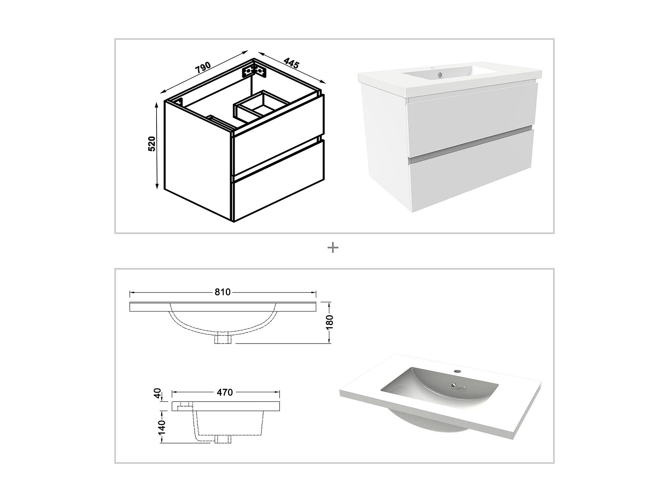 AICA Meuble Salle de Bain 80cm Blanc vasque + miroir 3 couleurs lumineux