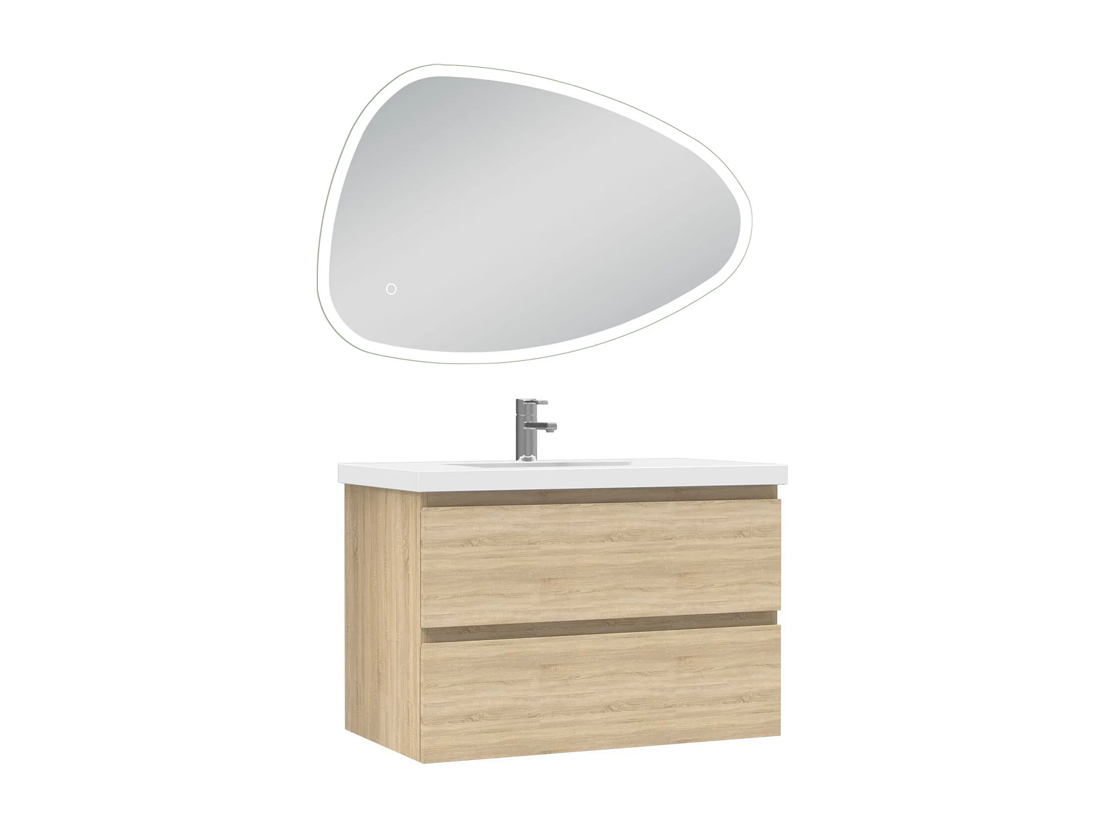 AICA Meuble Salle de Bain 80cm Chêne vasque + miroir 3 couleurs lumineux
