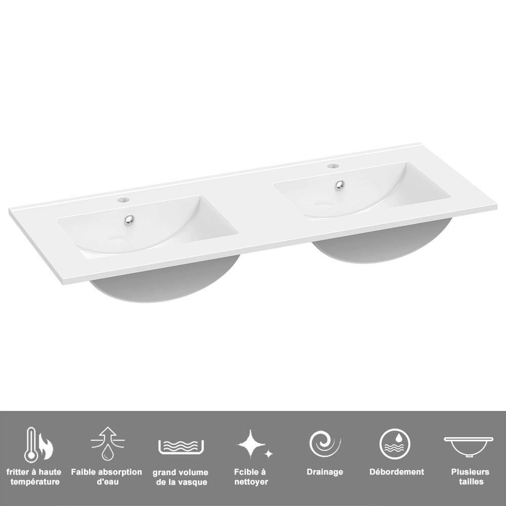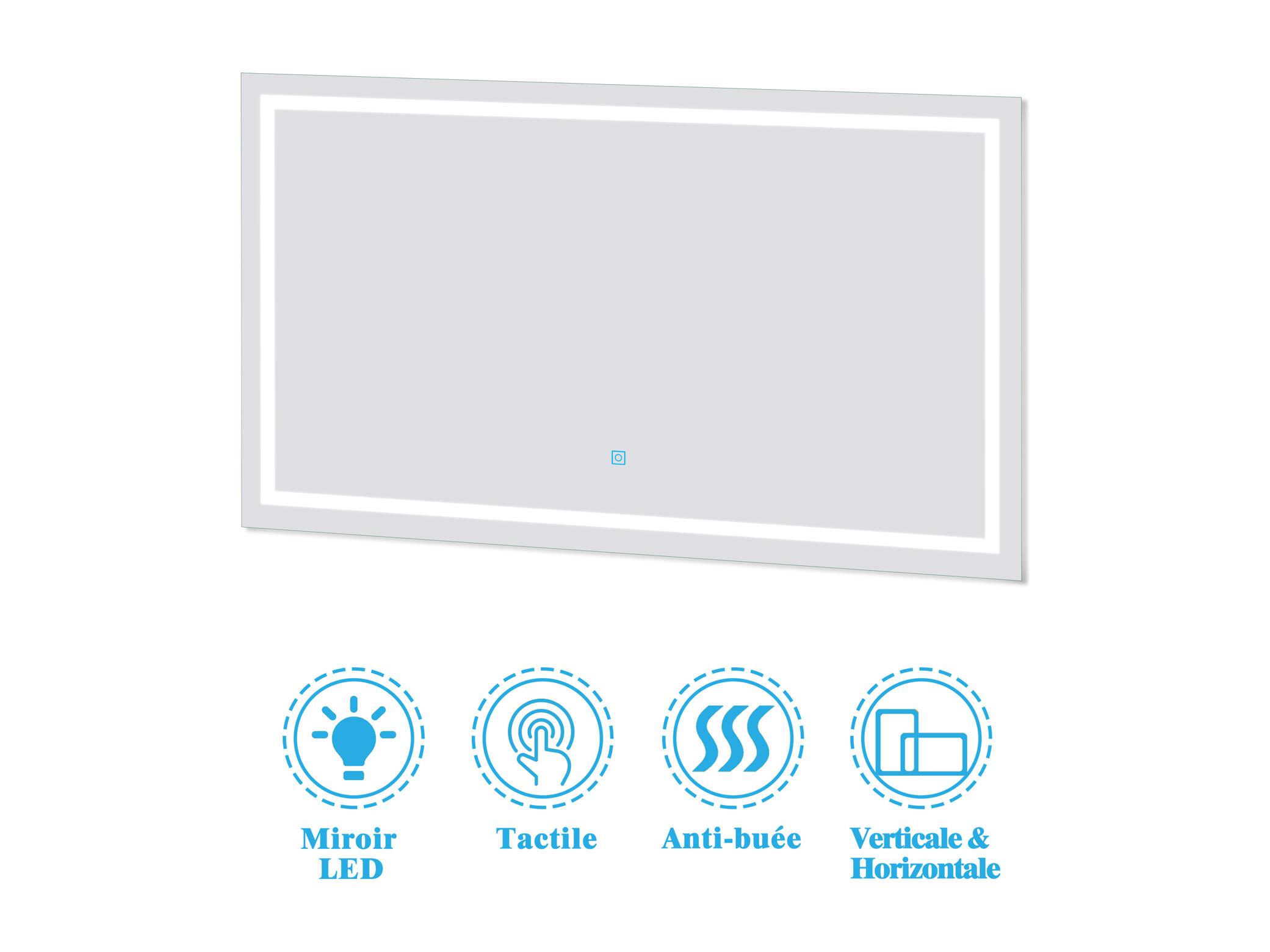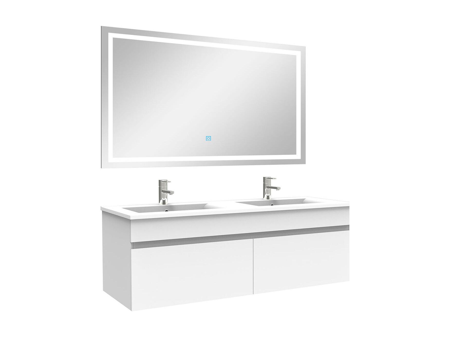 AICA Meuble Salle de Bain Blanc + vasque + miroir lumineux 120cm