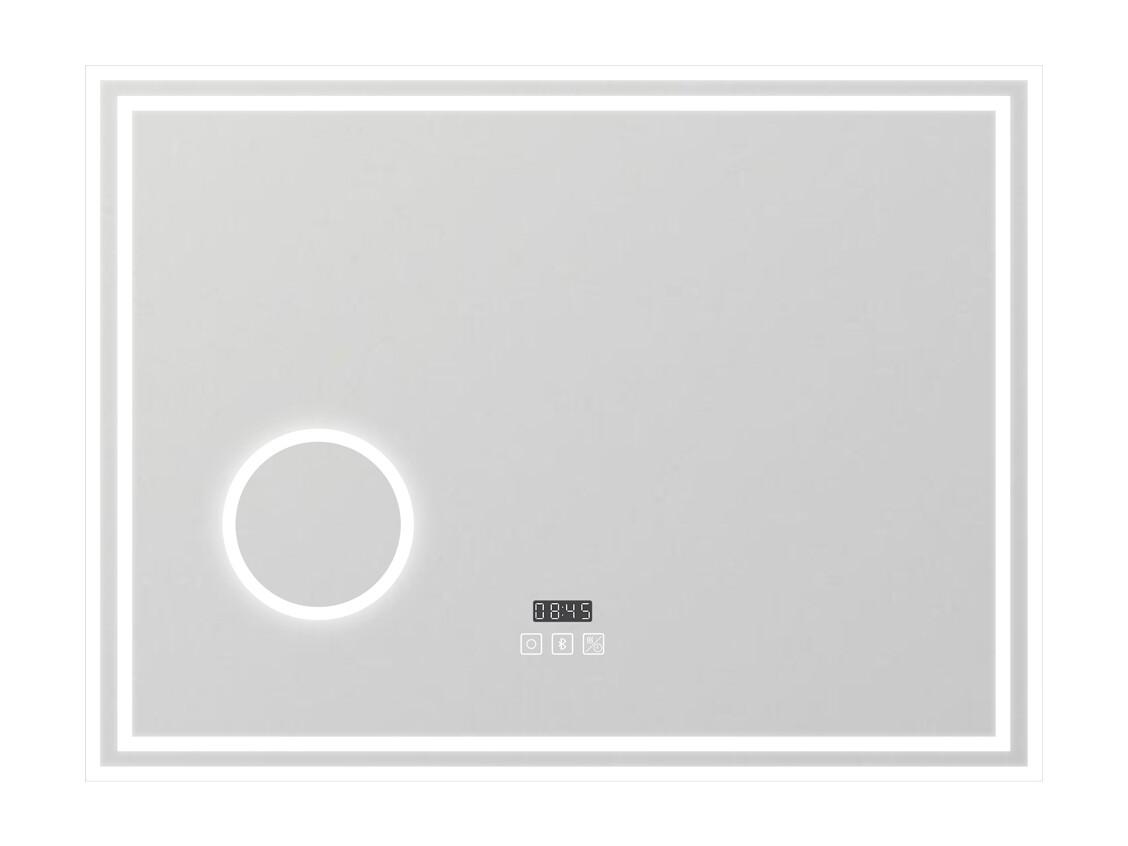AICA Miroir de salle de bain LED 100x60cm Tricolor anti-buée avec bluetooth simple, horloge et miroir grossissant 3x