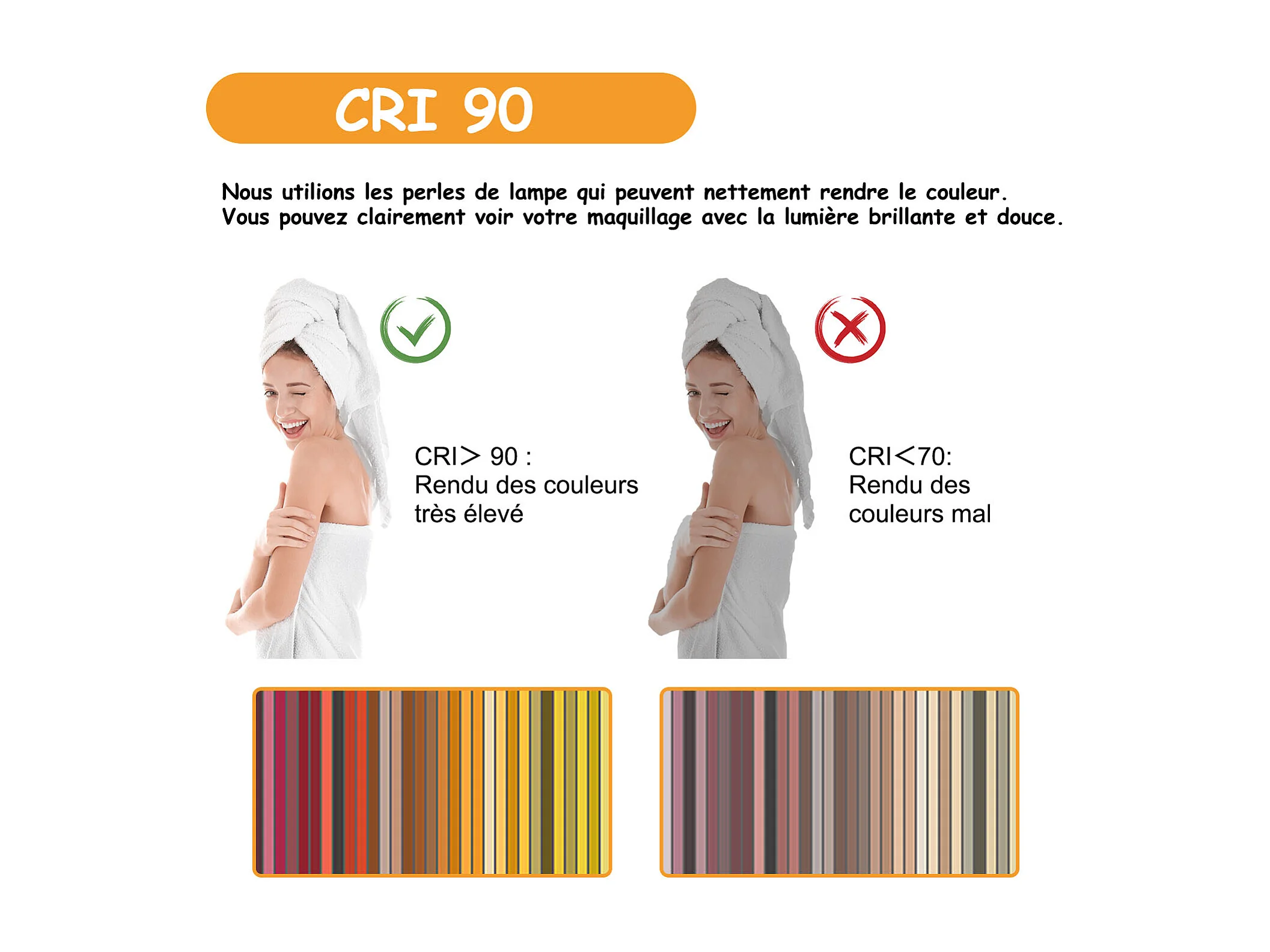Miroir lumineux grossissant 3x, l.100 x H.60 cm, Miroir de Salle de Bain LED avec Bluetooth + 3 Couleurs + Anti-buée, Mural Miroir éclairé