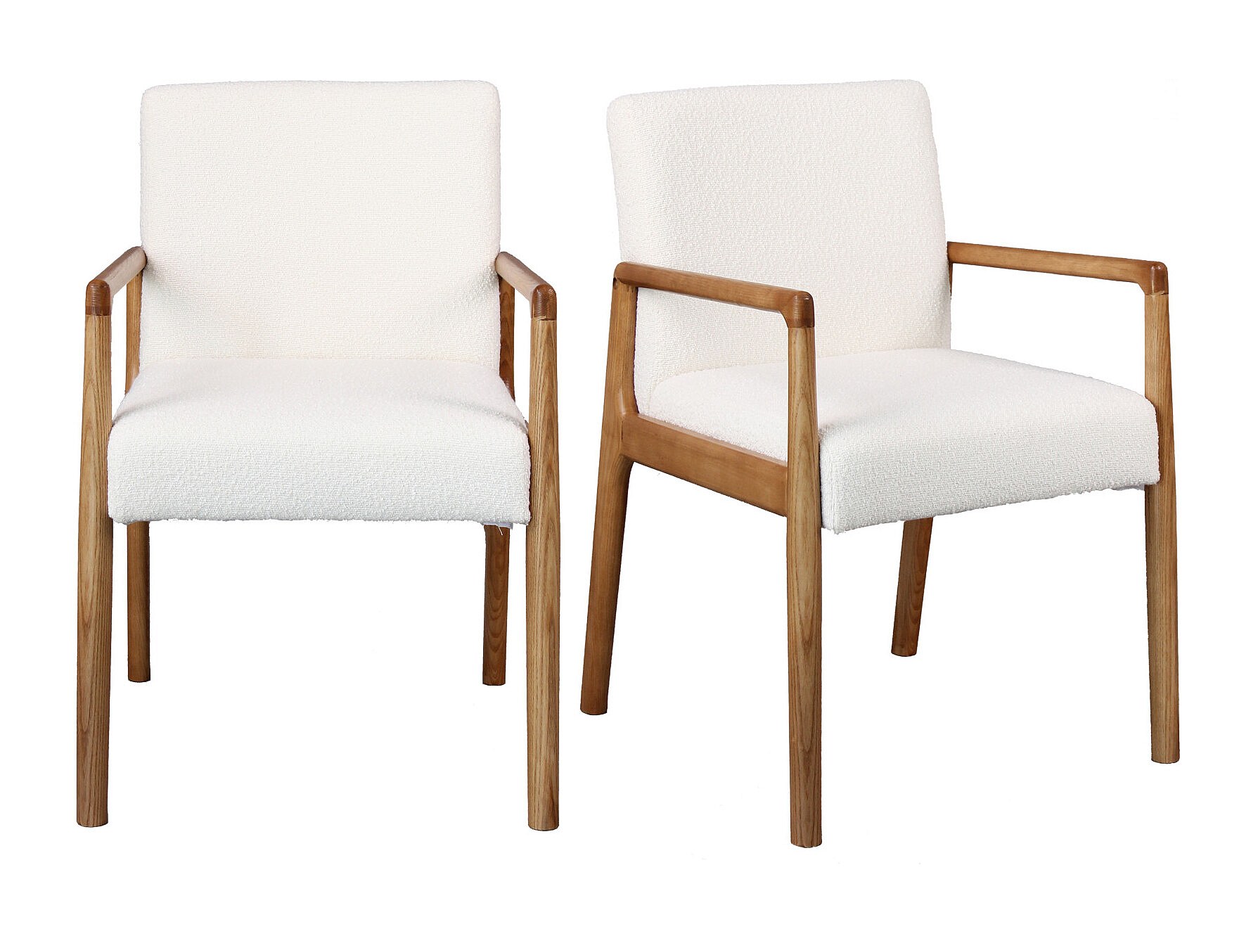ALBAN-Fauteuil de table en Frêne naturel et tissu Curly Ecru (x2)