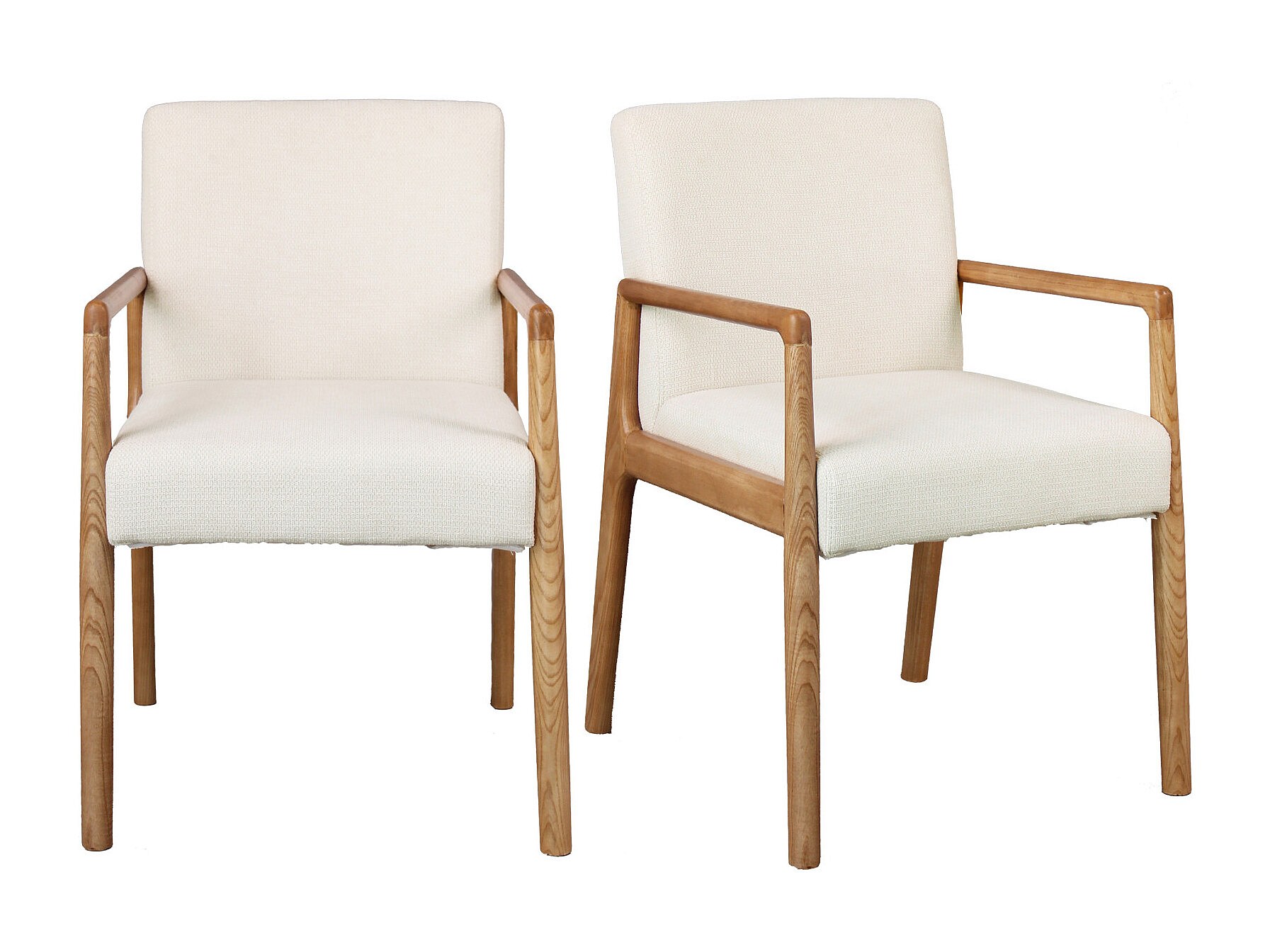 ALBAN-Fauteuil de table en Frêne naturel et tissu Trendy Ecru (x2)