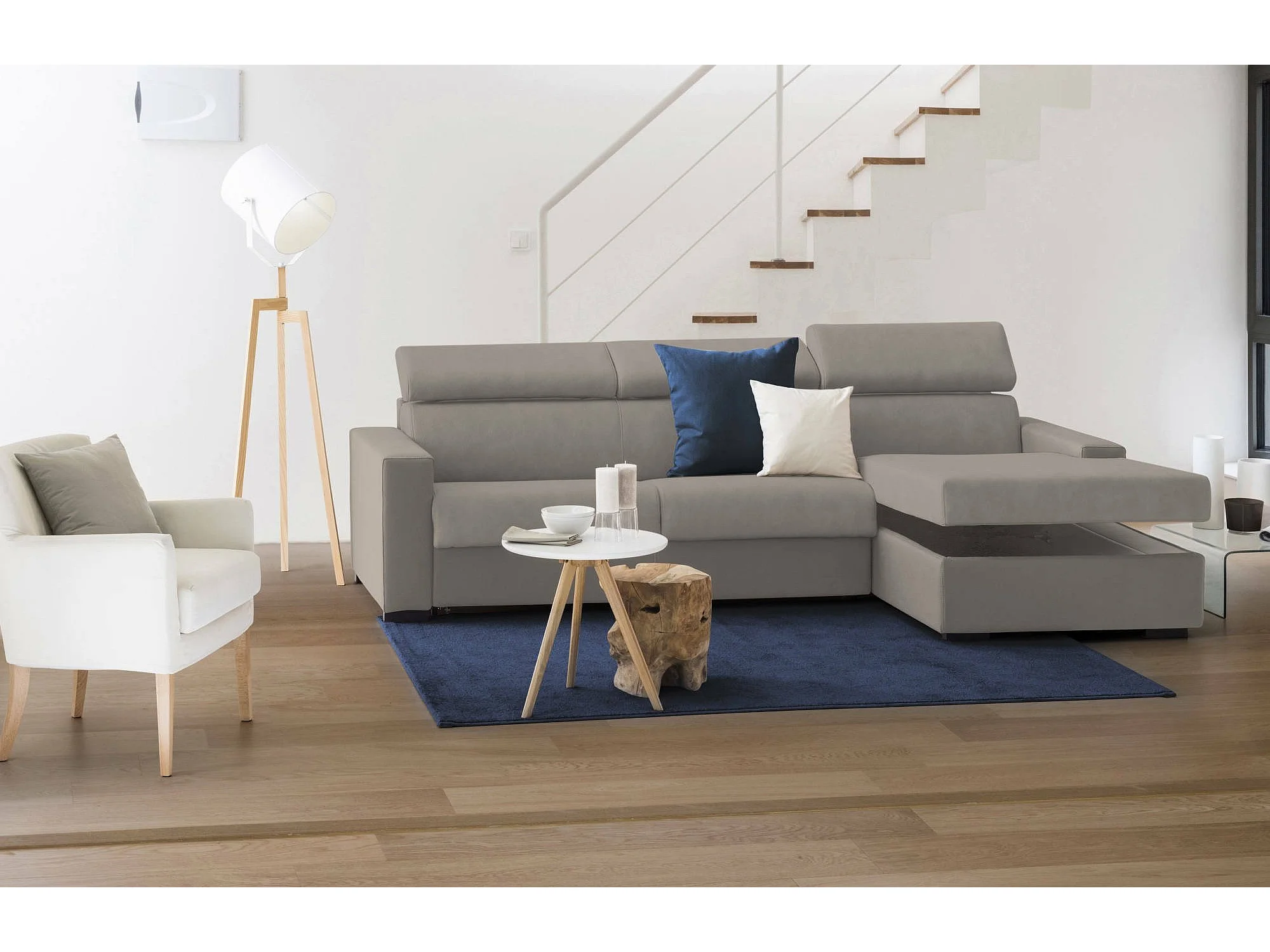 Alberta Slaapbank, Hoekbank, 100% Made in Italy, Bank met draaibare opening, met opbergschiereiland rechts, met standaard armleuningen, 280x95h85 cm, Taupe