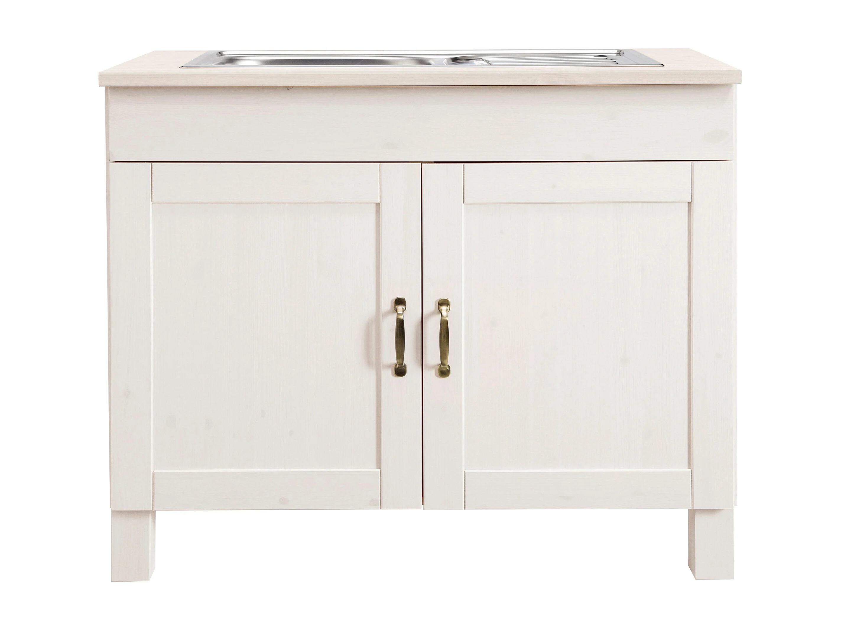 Alby | Meuble évier 100 cm avec 2 portes en pin blanc laqué