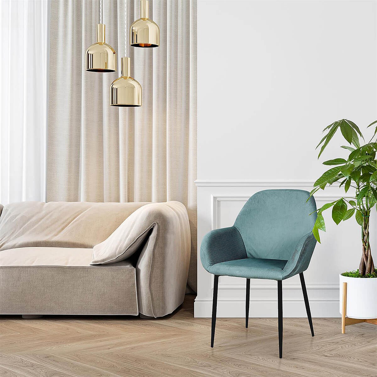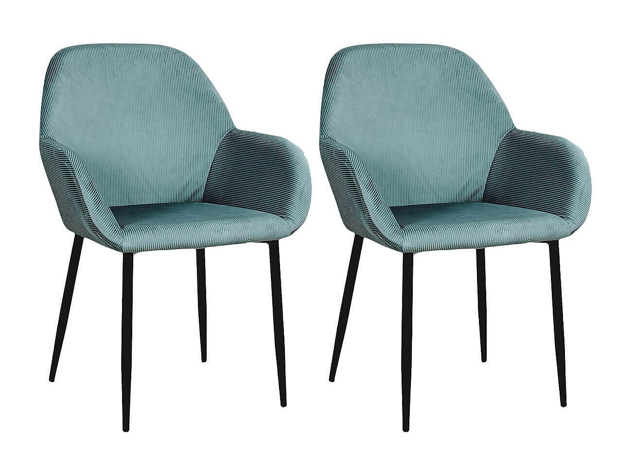 ALESSIA - Lot de 2 Fauteuils Velours Côtelé Bleu Canard