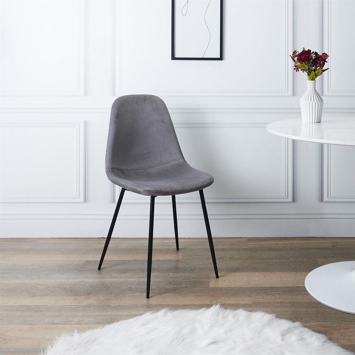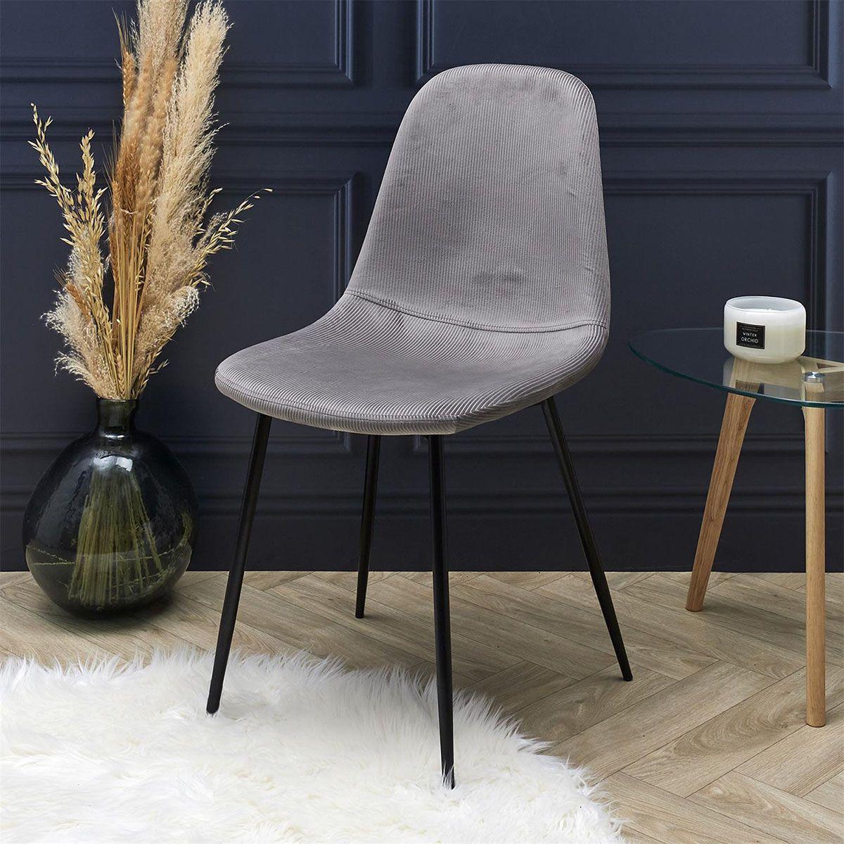 ALESSIA - Lot de 4 Chaises Velours Côtelé Gris Foncé