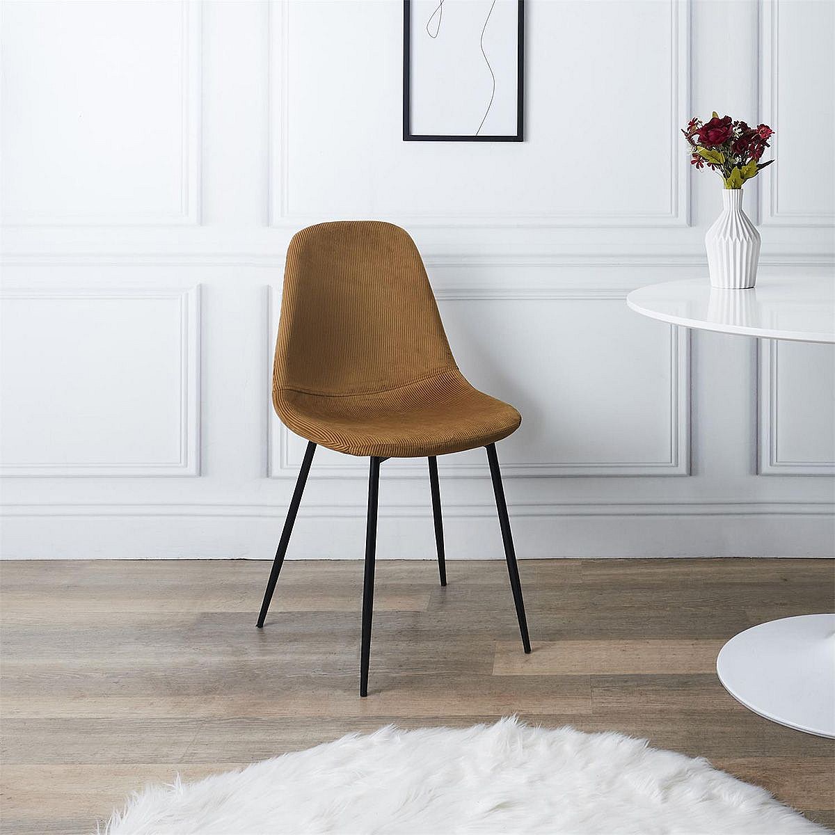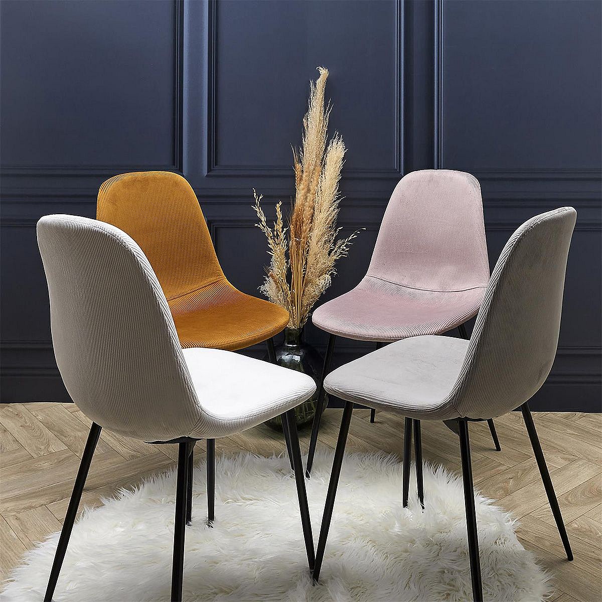 ALESSIA - Lot de 6 Chaises Velours Côtelé Jaune Moutarde